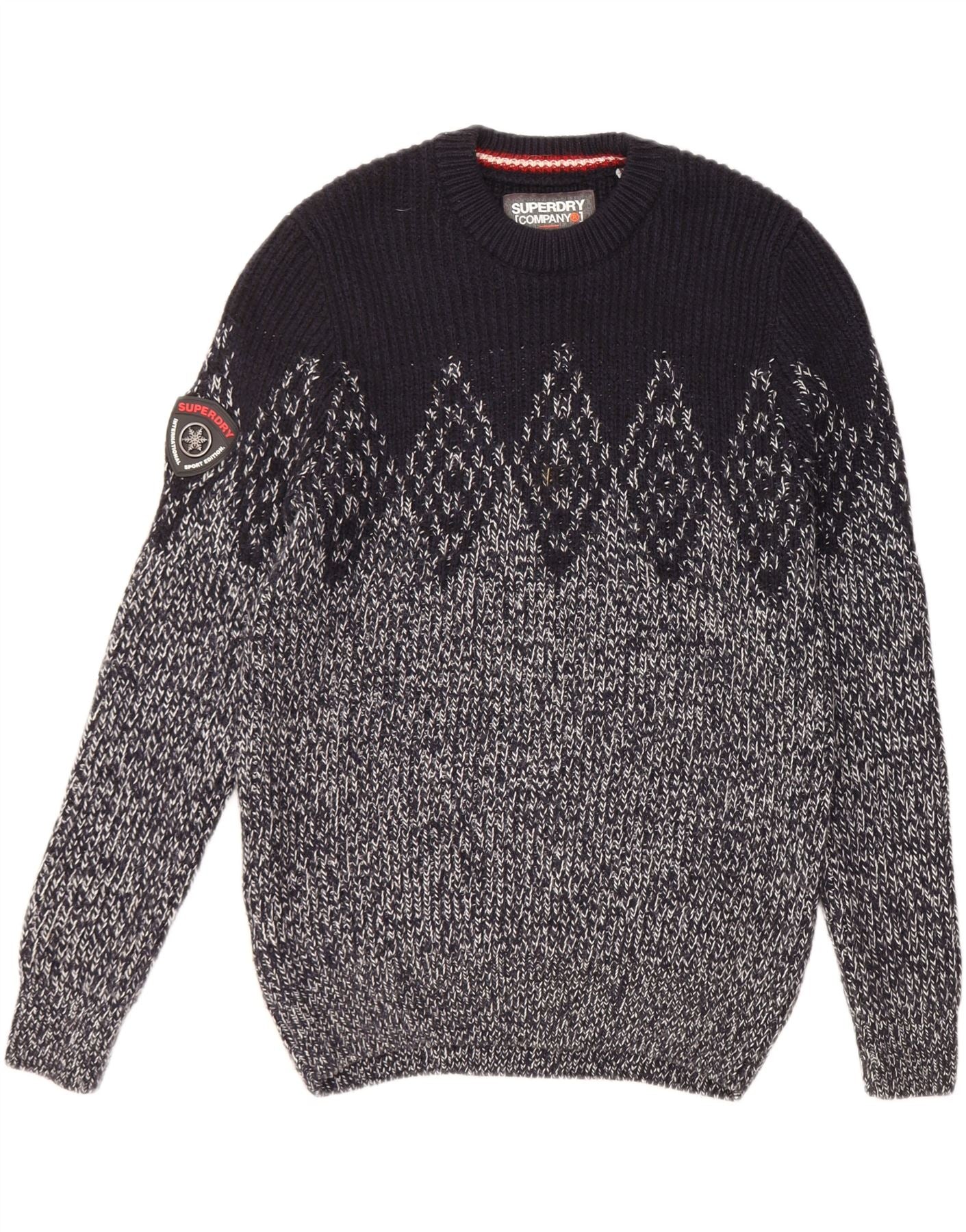 Suéter masculino SUPERDRY com gola redonda grande azul marinho Argyle/Diamante