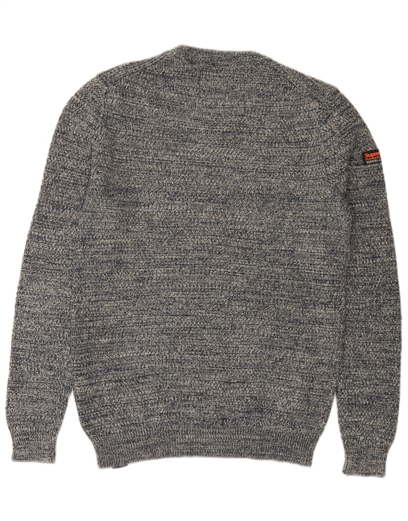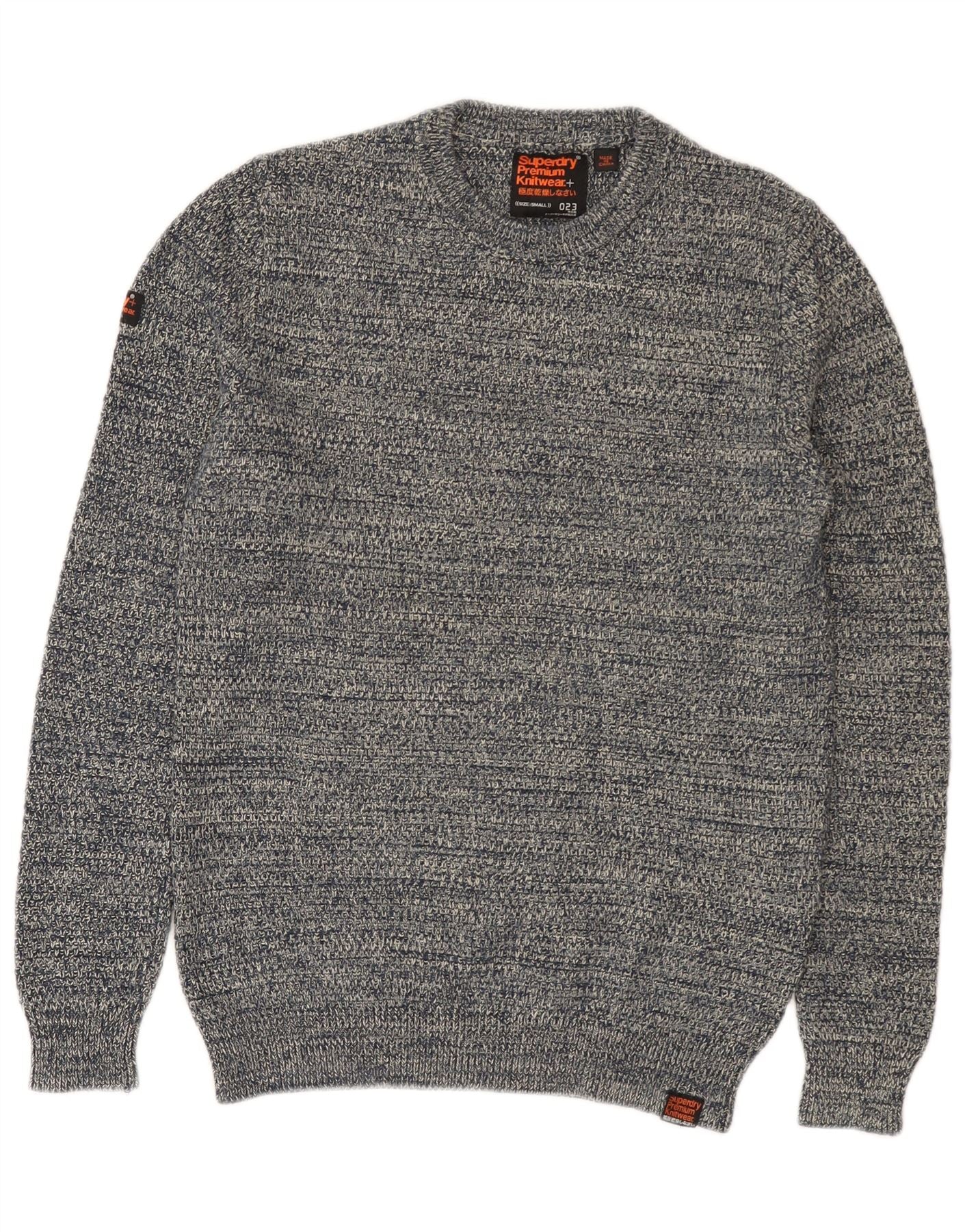 Suéter masculino SUPERDRY com gola redonda, pequeno algodão manchado azul marinho