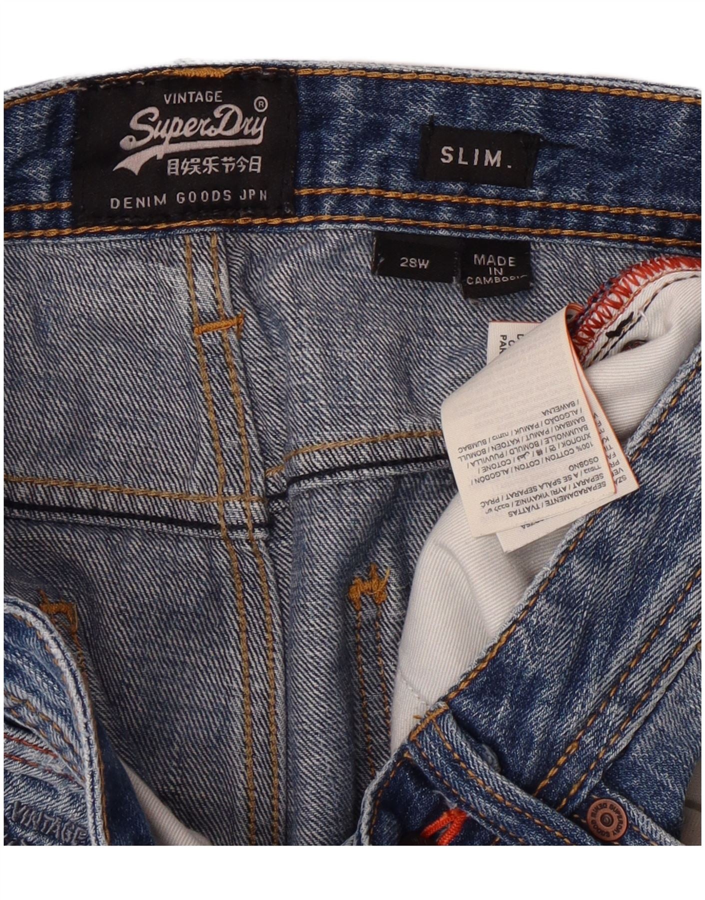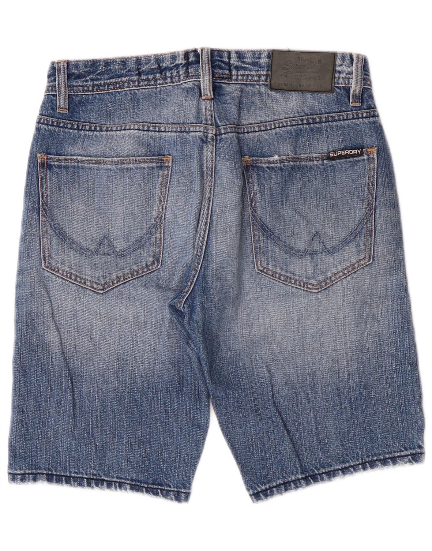 Shorts jeans slim masculino SUPERDRY desgastado W28 algodão azul médio