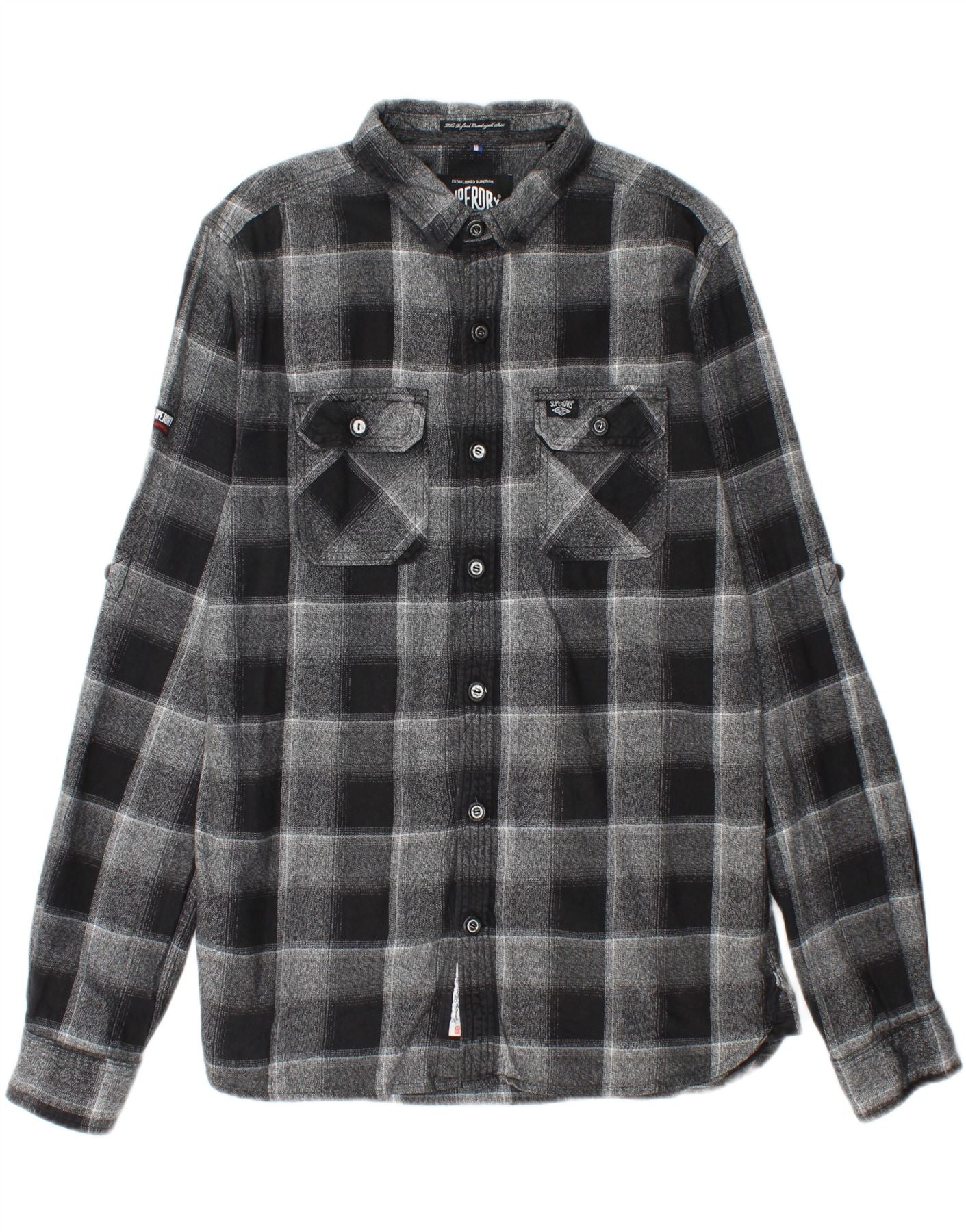 Camisa masculina de flanela SUPERDRY XL cinza algodão xadrez
