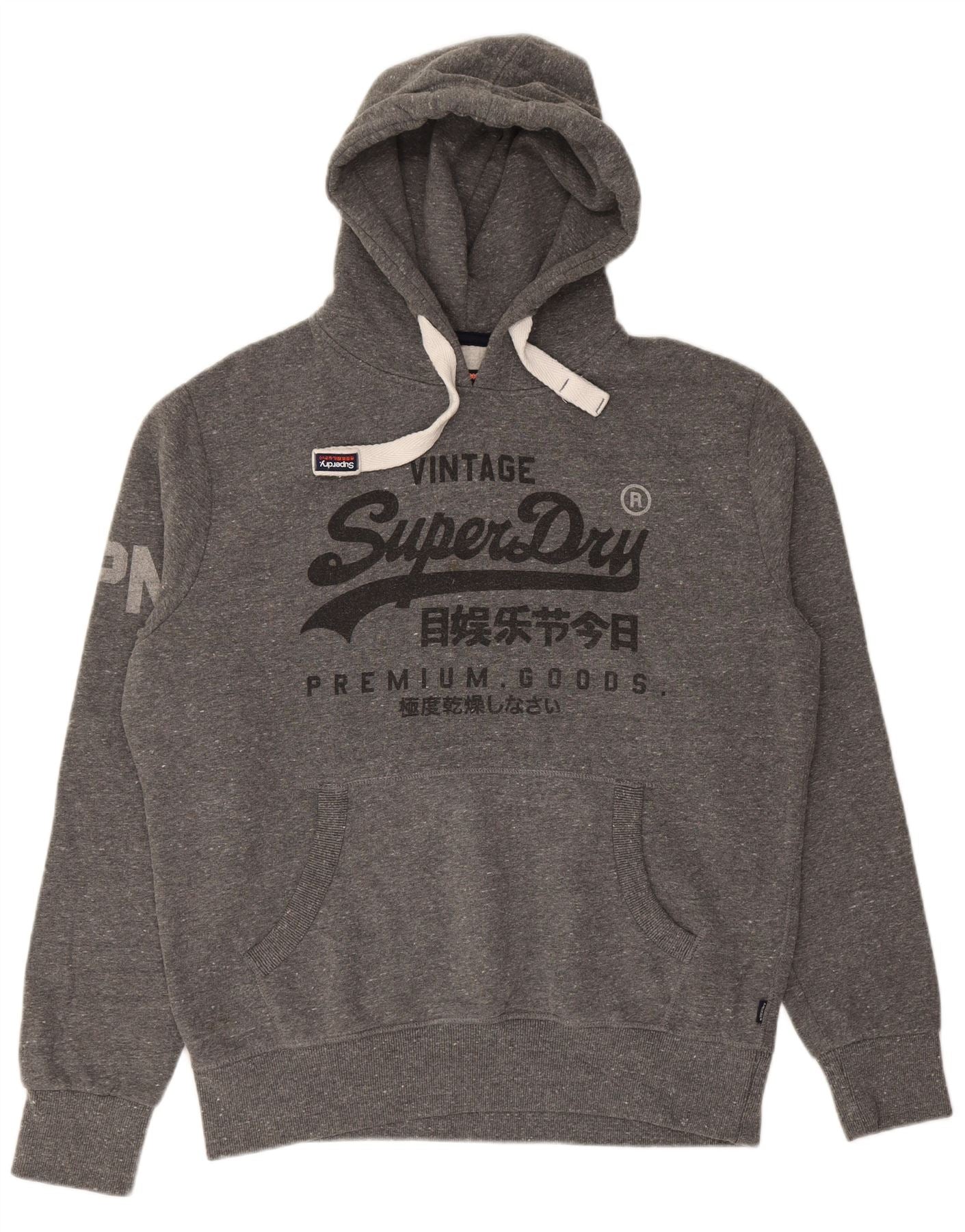 SUPERDRY moletom com capuz masculino gráfico 2XL algodão manchado cinza