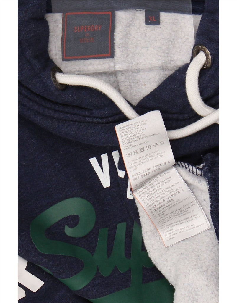 Jumper com capuz gráfico masculino SUPERDRY XL azul marinho algodão