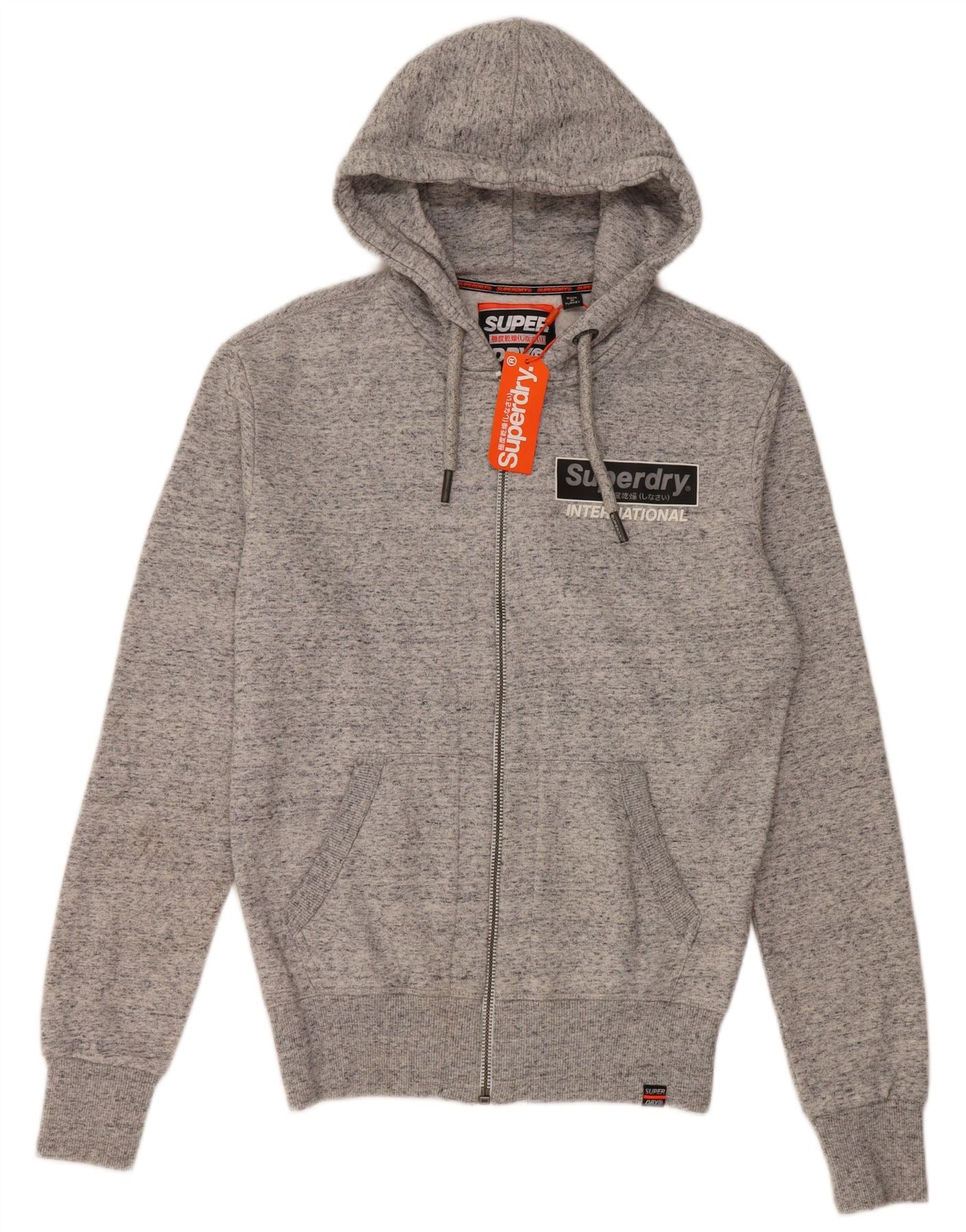 Suéter masculino SUPERDRY gráfico solto com capuz e zíper XS algodão manchado cinza