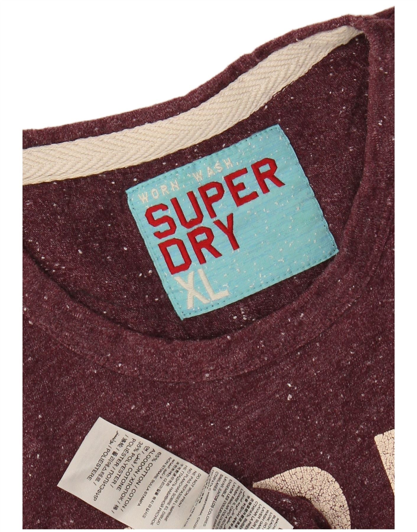Camiseta gráfica masculina SUPERDRY Top XL algodão manchado Borgonha