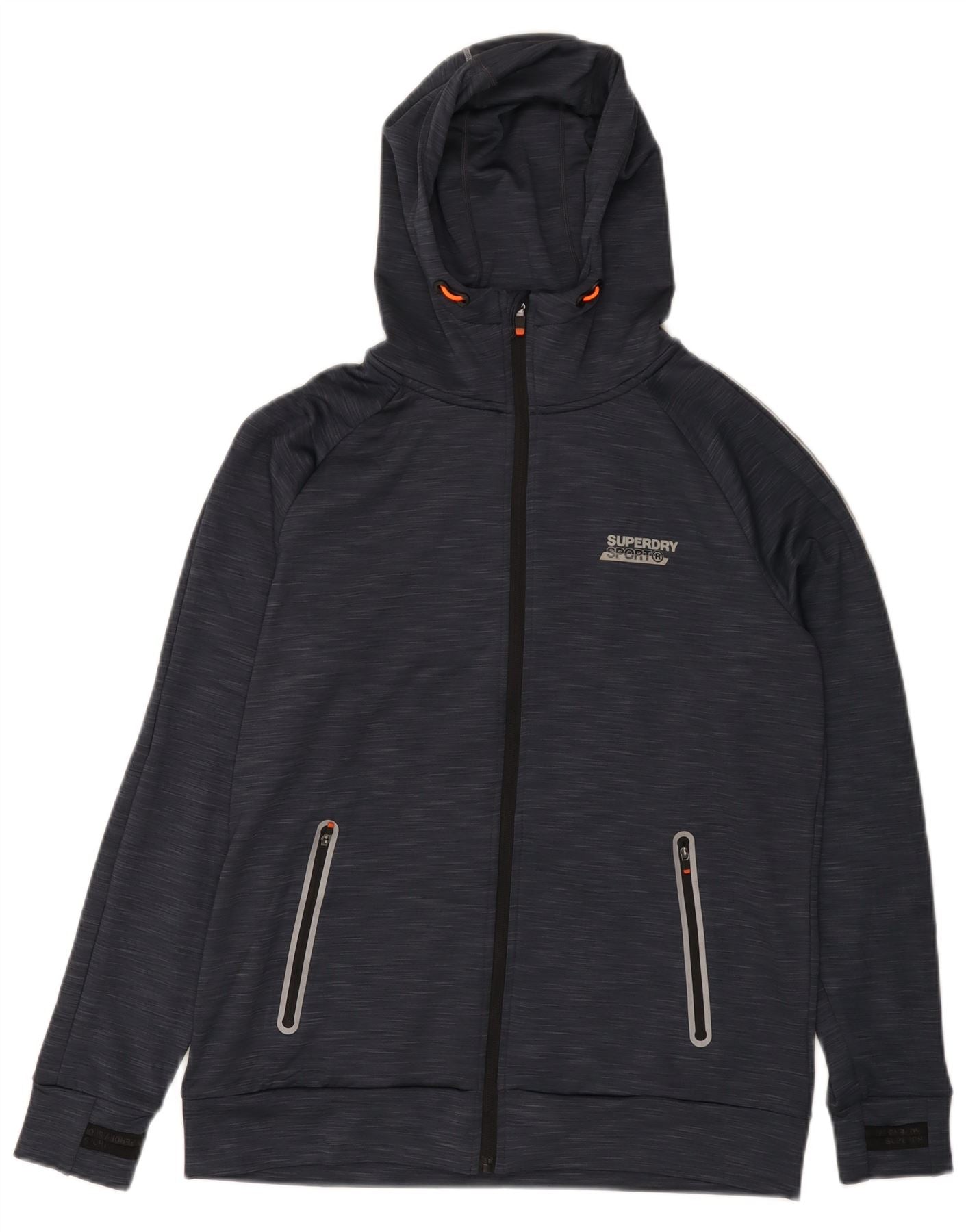 Suéter masculino SUPERDRY com capuz e zíper gráfico grande poliéster manchado azul marinho