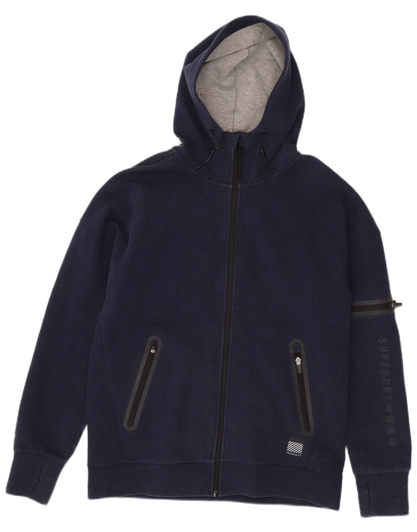 Suéter masculino SUPERDRY com capuz e zíper gráfico médio algodão azul marinho