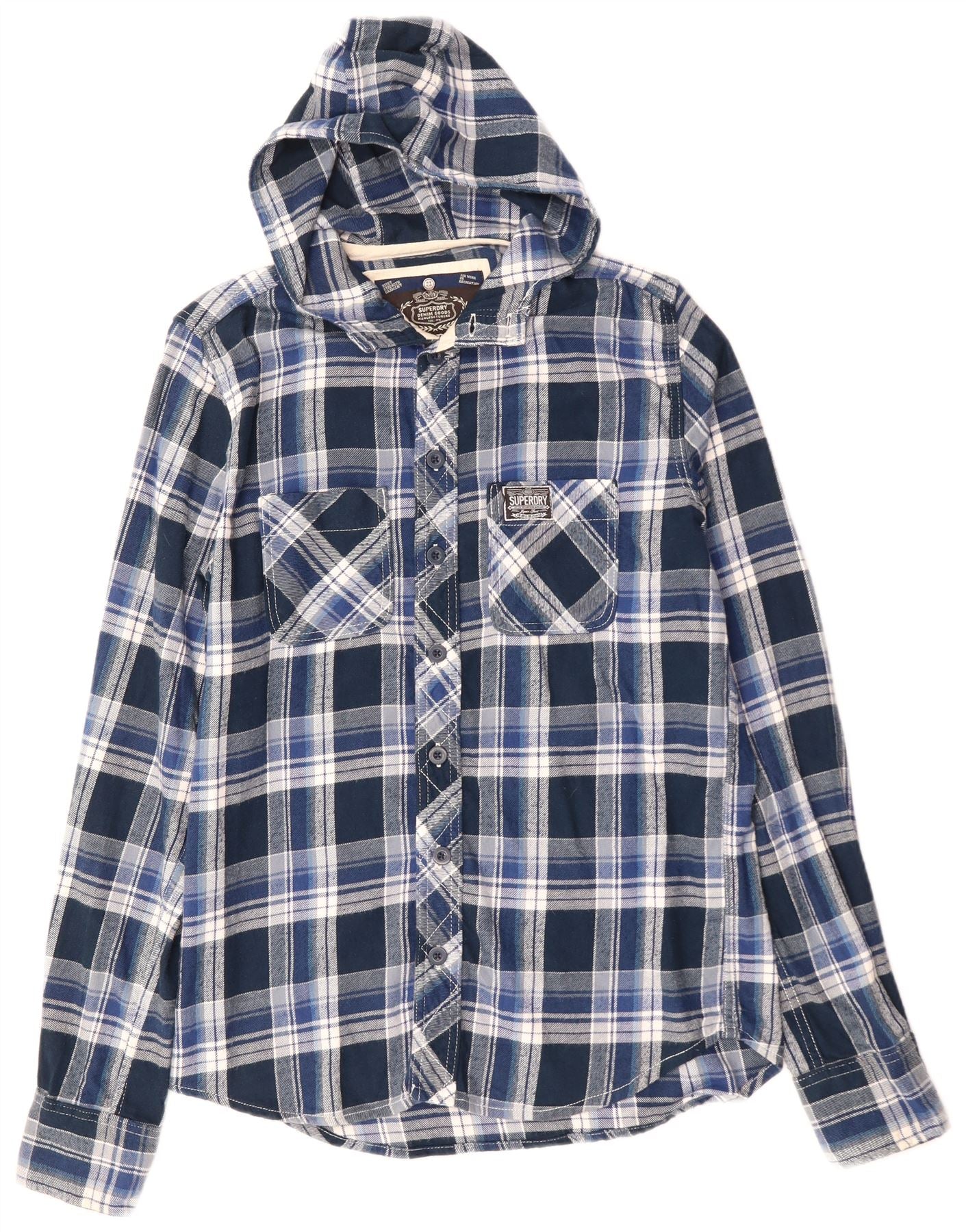 Camisa masculina de flanela com capuz SUPERDRY algodão xadrez azul médio