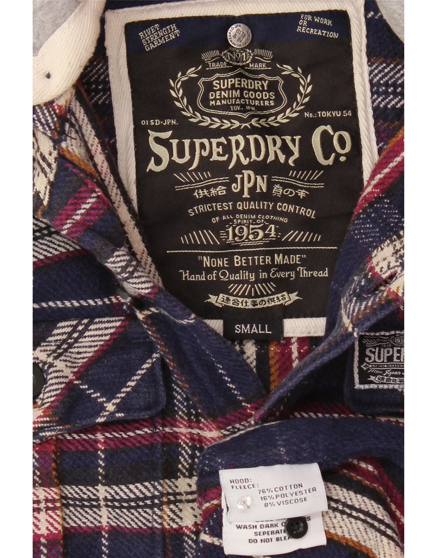 Camisa masculina de flanela com capuz SUPERDRY pequena xadrez azul marinho de algodão