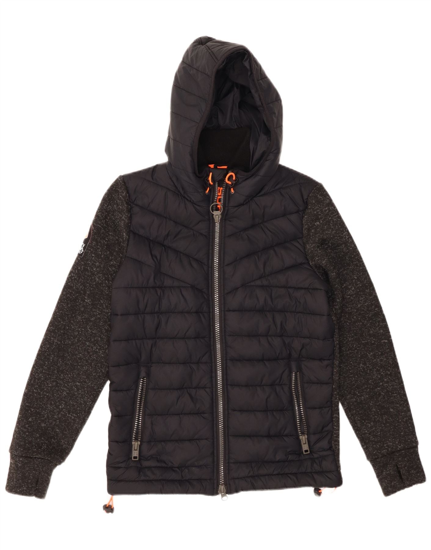Jaqueta masculina acolchoada com capuz SUPERDRY UK 38 médio preto colorblock nylon