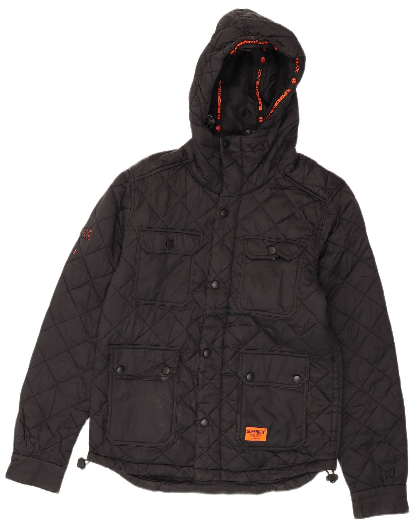 Jaqueta masculina acolchoada com capuz SUPERDRY Reino Unido 36 nylon preto pequeno