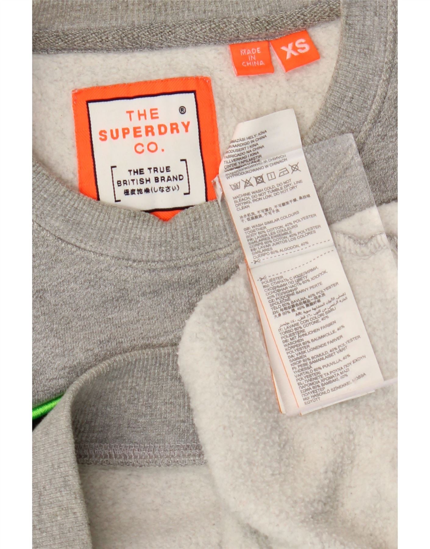 SUPERDRY masculino solto ajuste moletom gráfico jumper XS cinza algodão manchado