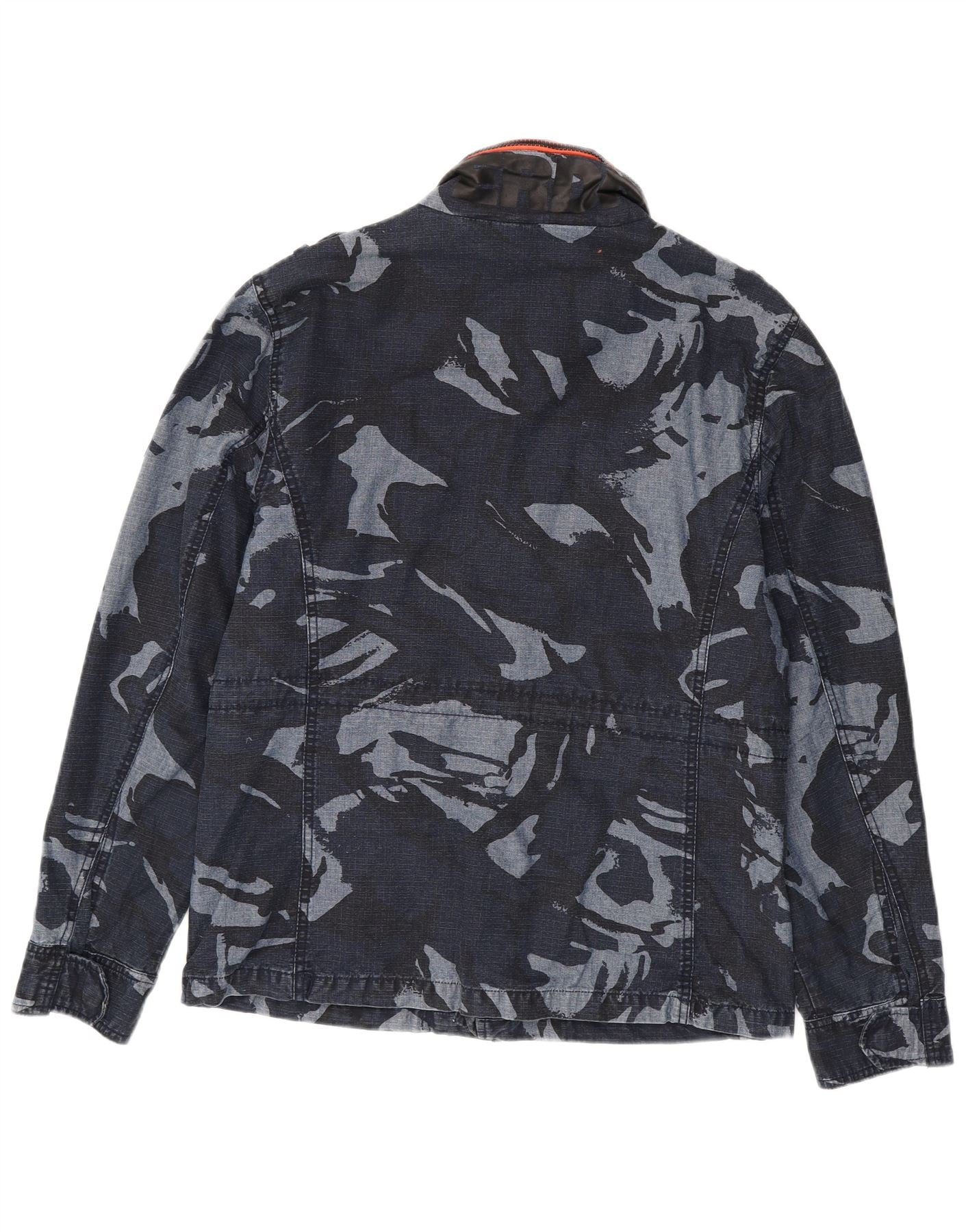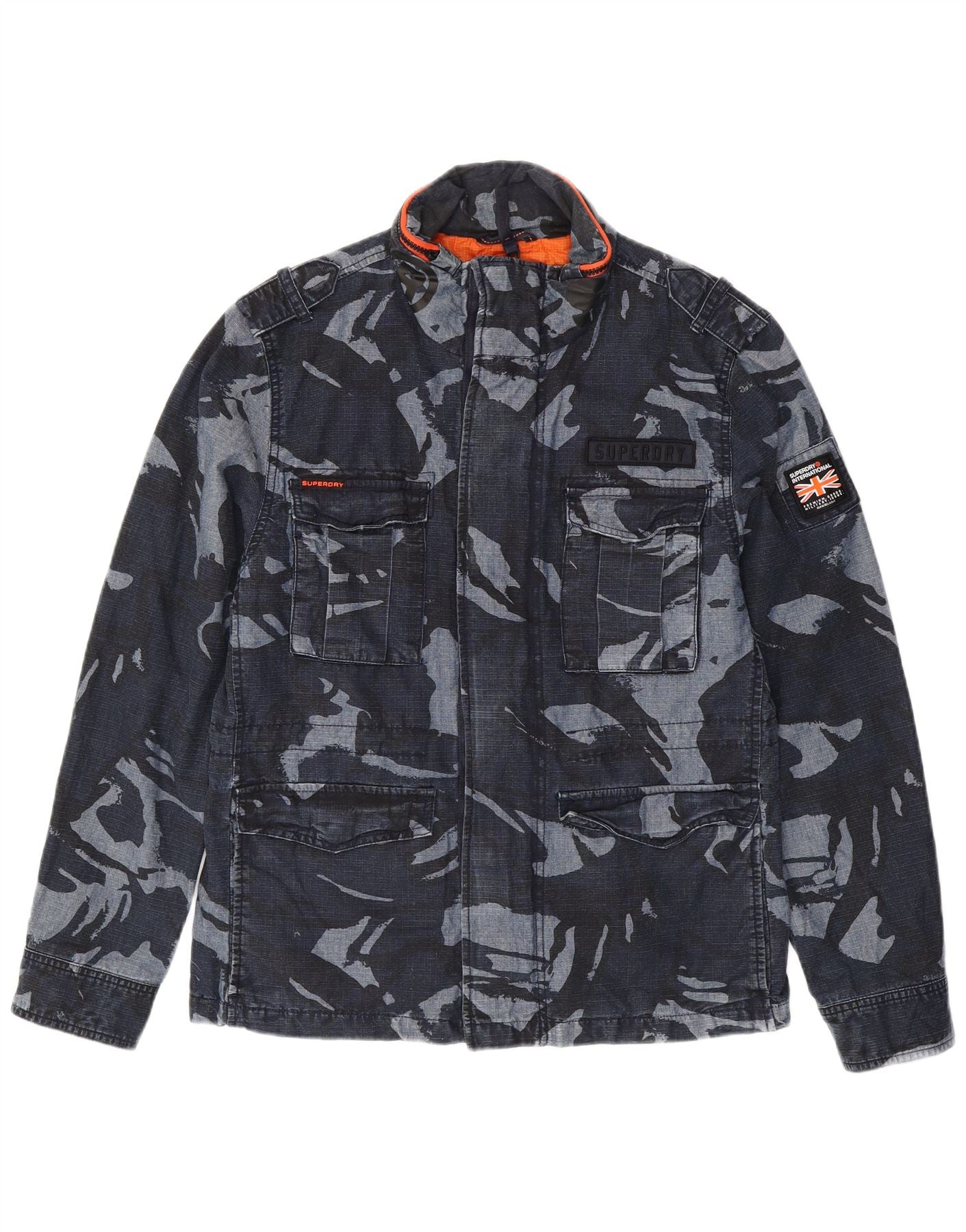 Jaqueta militar masculina SUPERDRY Reino Unido 40 grande algodão camuflado azul marinho