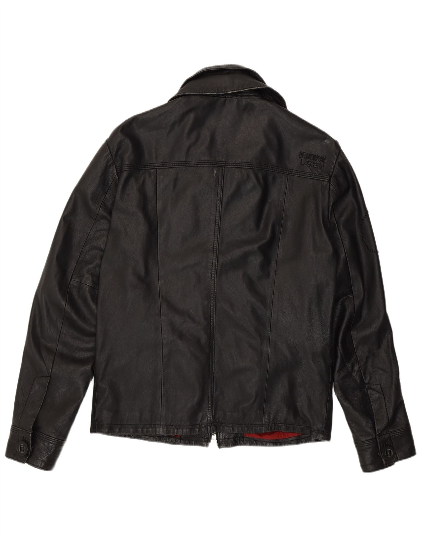 Jaqueta de couro militar masculina Superdry UK 38 couro preto médio