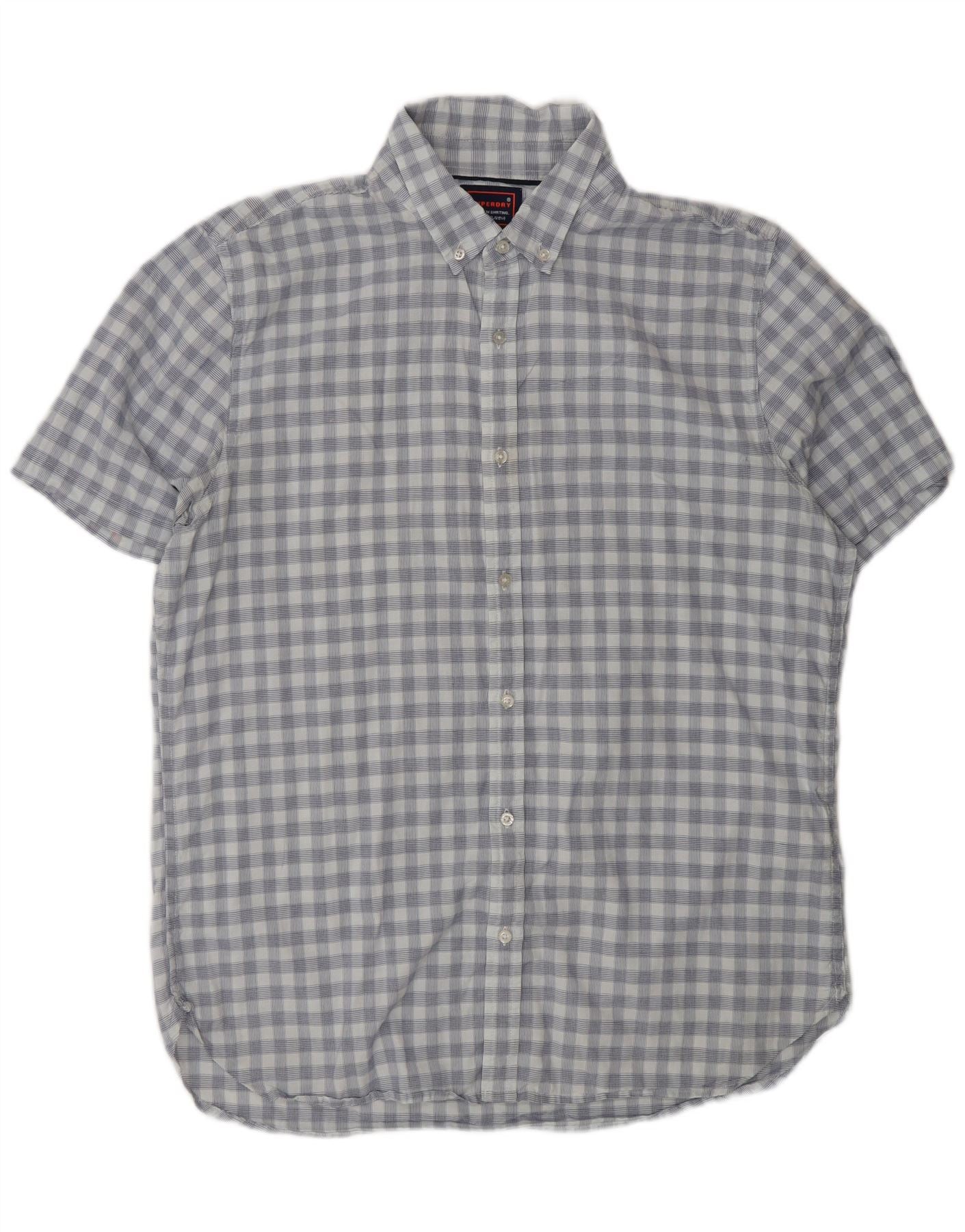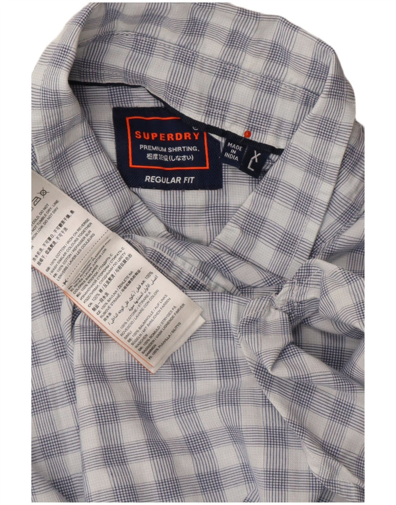 Camisa masculina de manga curta SUPERDRY Regular Fit XL azul xadrez algodão