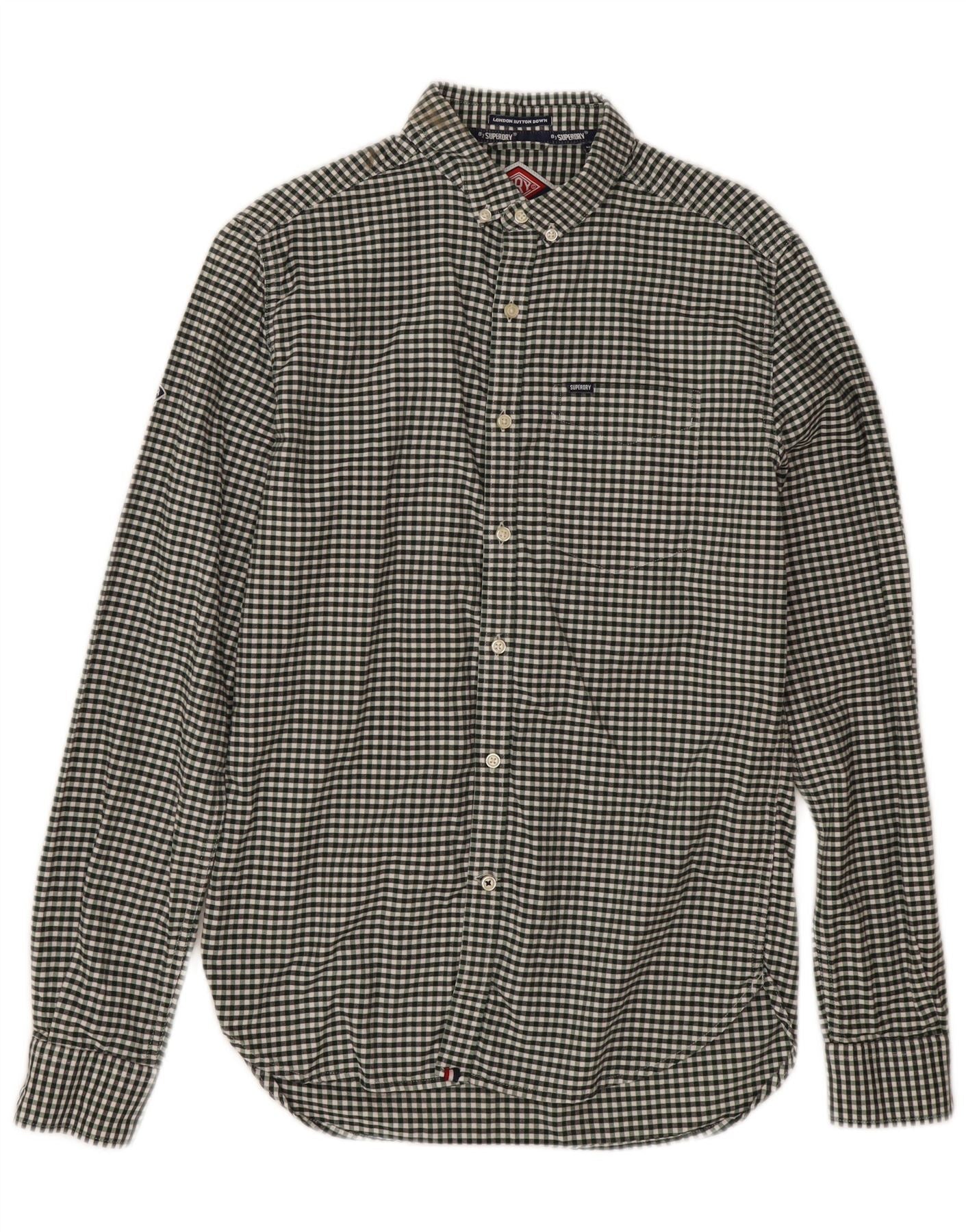 - Descrição da IA: Esta camisa masculina Superdry, modelo London Button Down, é confeccionada em tecido nítido. Ele apresenta um padrão clássico de algodão verde e branco por toda parte. O decote com colarinho e a frente com botões completos oferecem um apelo inteligente e atemporal. Mangas compridas com punhos abotoados e corte regular garantem um uso confortável e versátil. Detalhes sutis de botões completam este design clássico.