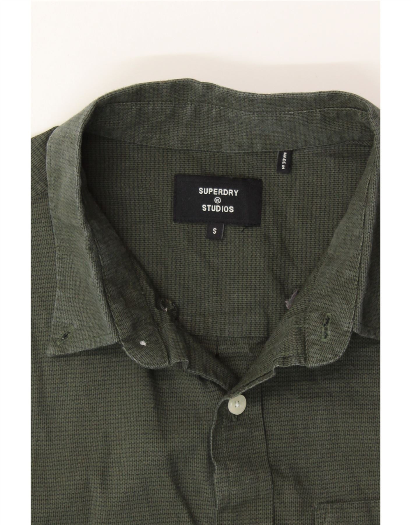 Camisa masculina SUPERDRY pequena xadrez cáqui de algodão
