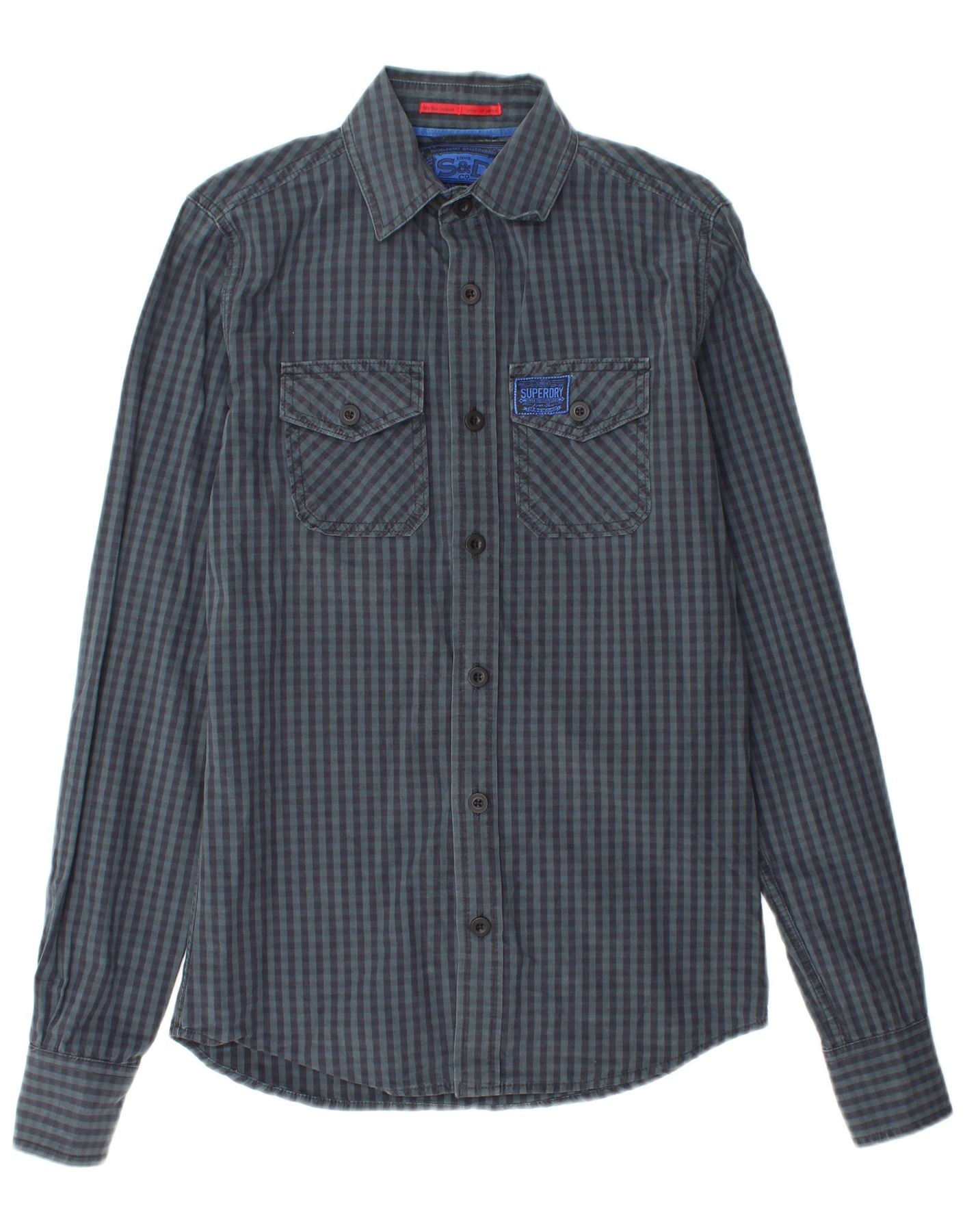 Camisa masculina SUPERDRY pequena algodão guingão azul marinho
