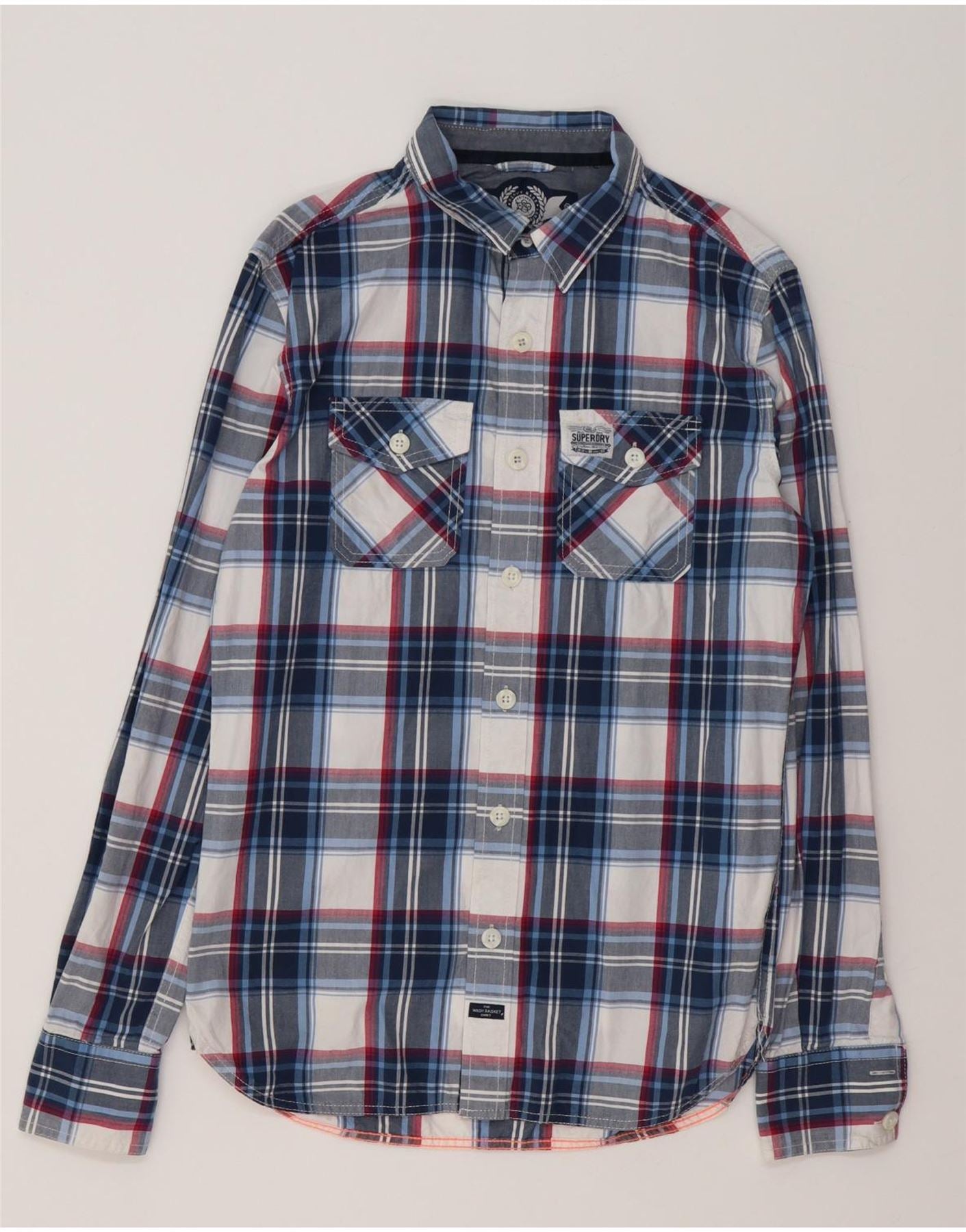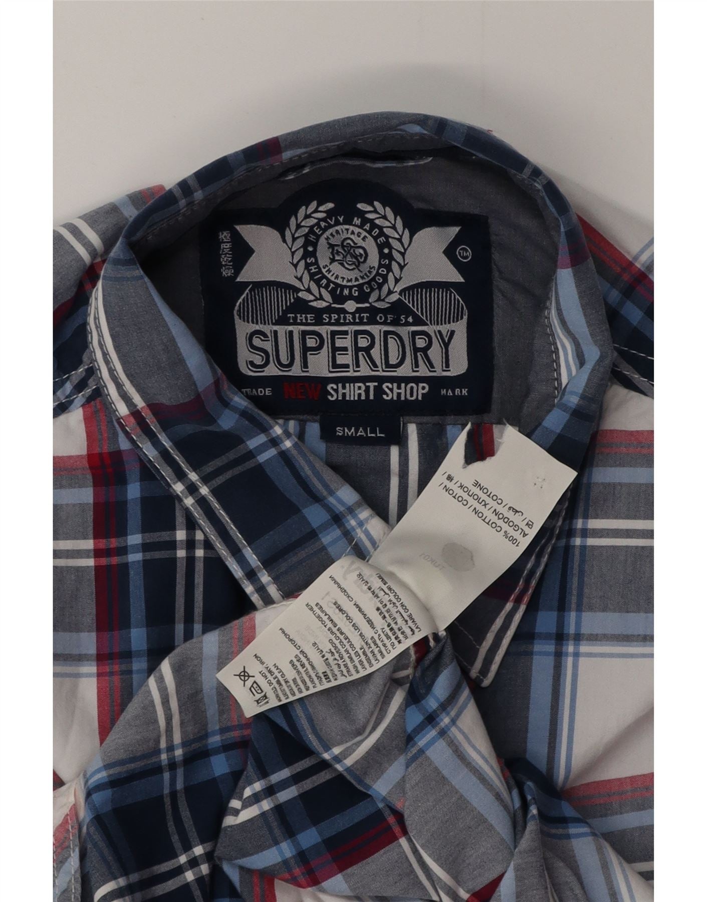 Camisa masculina SUPERDRY pequena xadrez azul marinho de algodão
