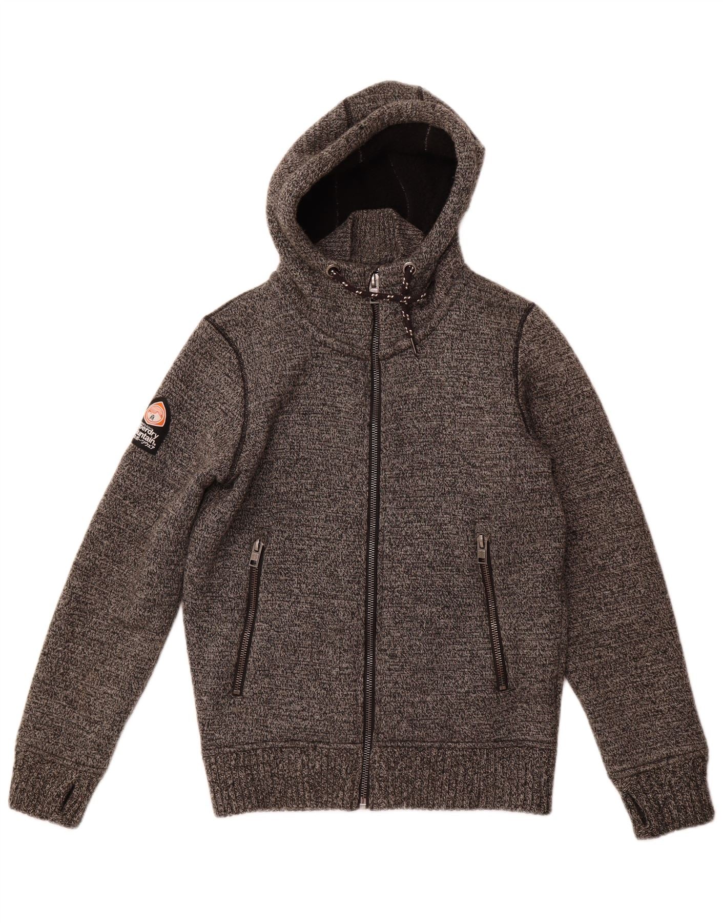 Jaqueta bomber masculina SUPERDRY Shooting Knit Reino Unido 38 Nylon manchado cinza médio