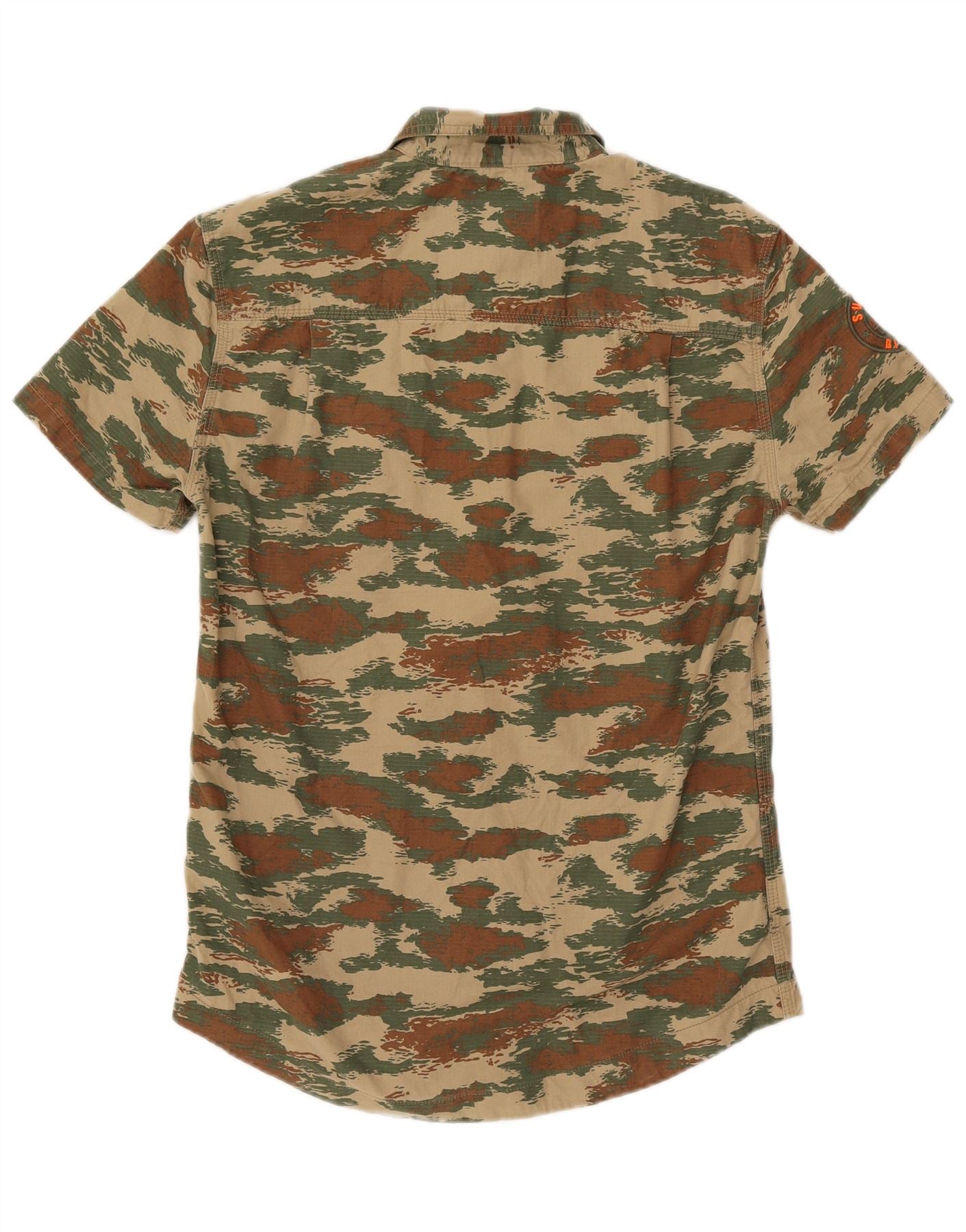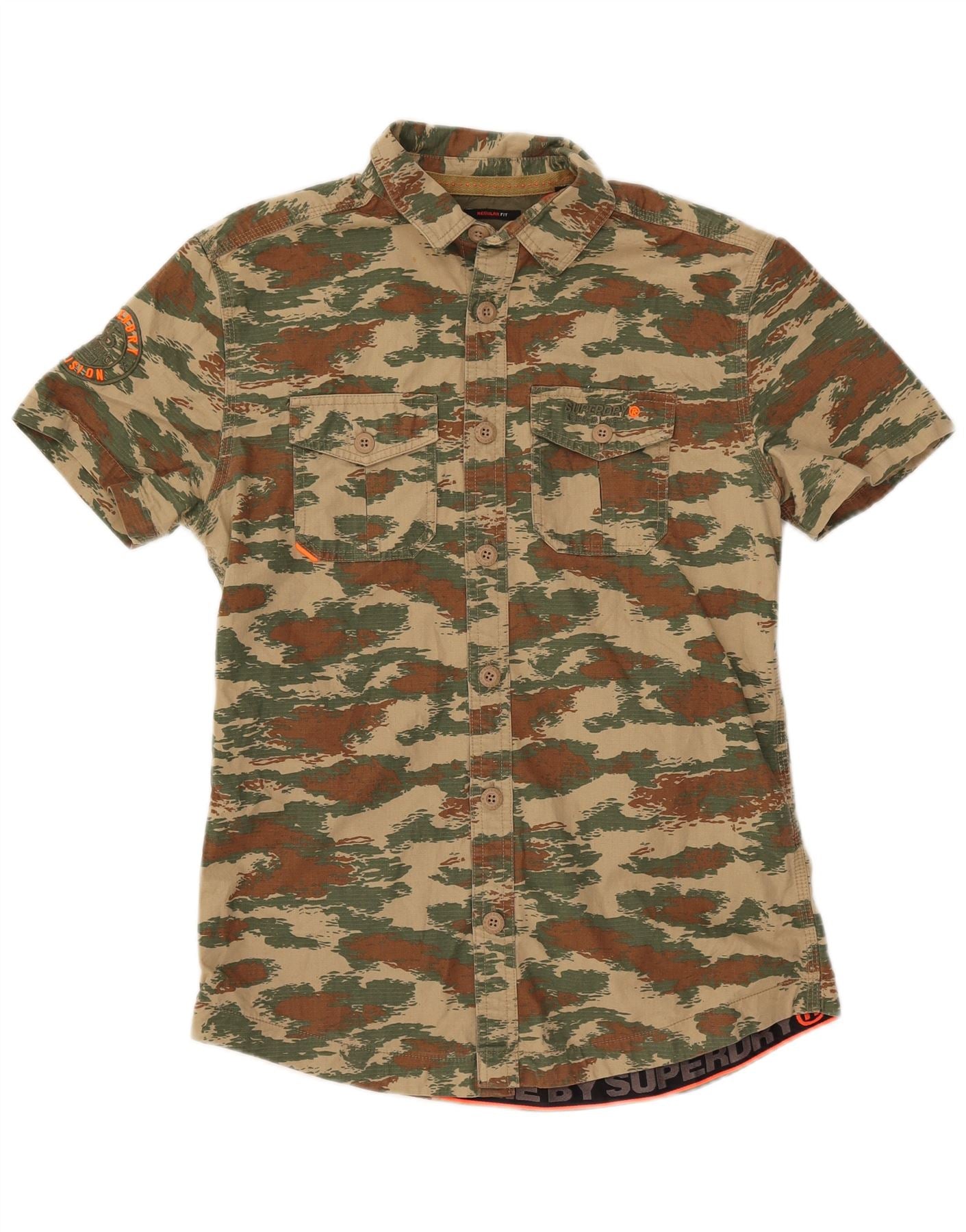 Camisa masculina SUPERDRY de manga curta com ajuste regular e algodão camuflado pequeno cáqui