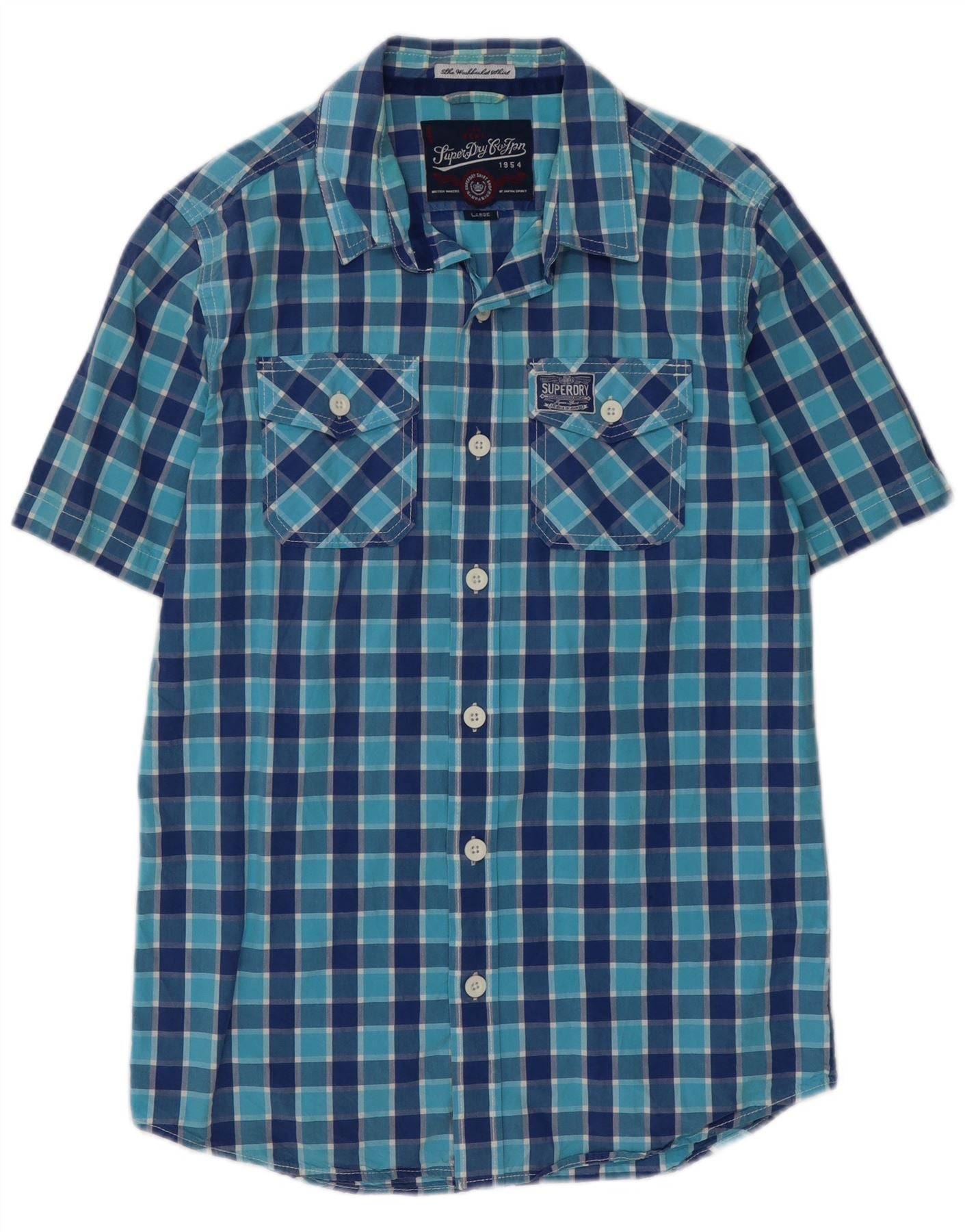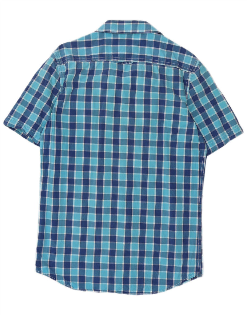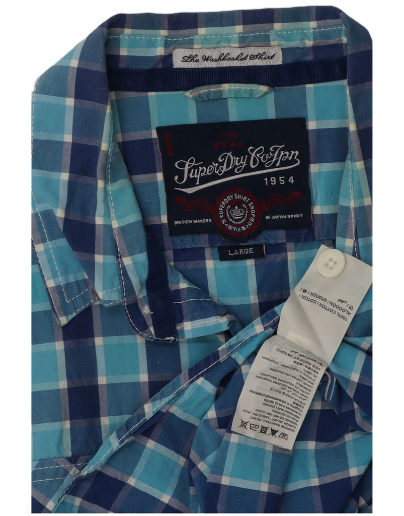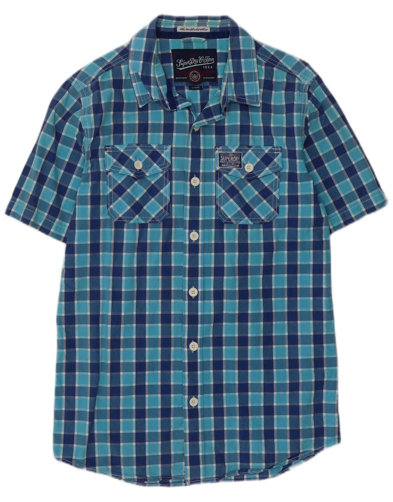 Camisa masculina de manga curta SUPERDRY grande algodão xadrez azul