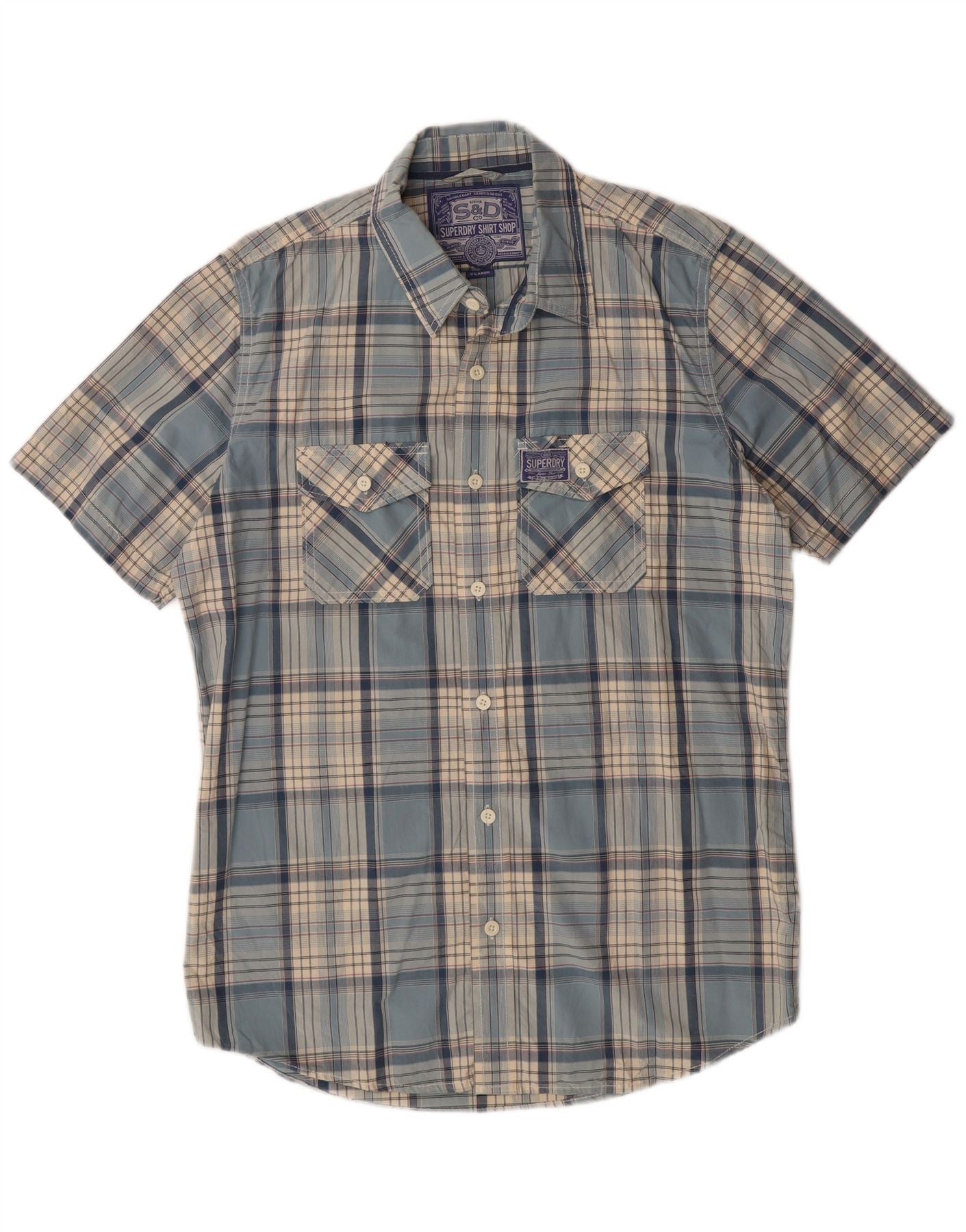 Camisa masculina de manga curta SUPERDRY XL azul xadrez algodão