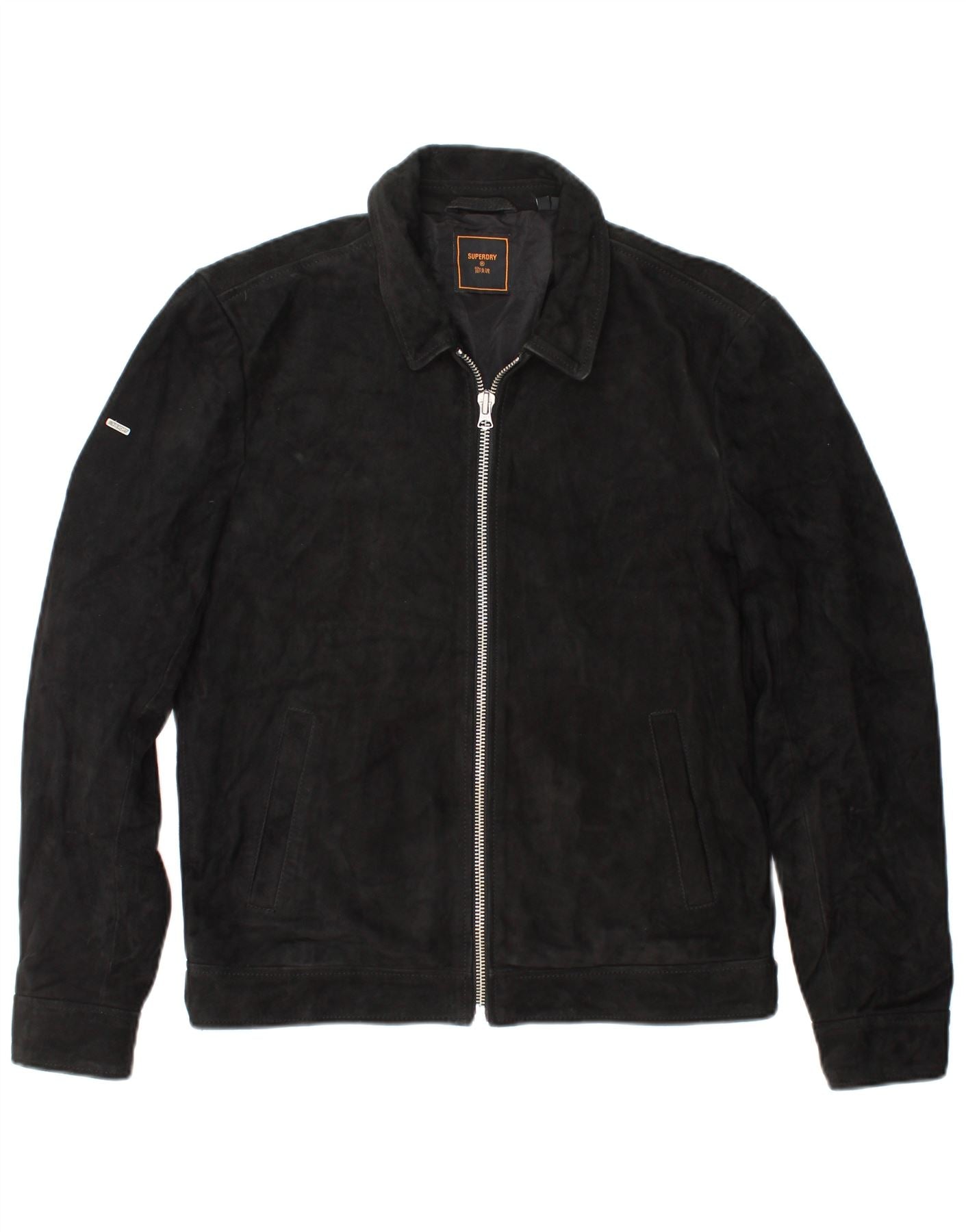 Jaqueta masculina de camurça SUPERDRY Reino Unido 36 pequena couro preto