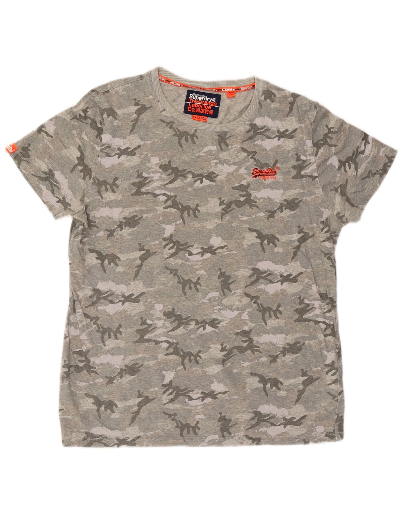 Camiseta masculina SUPERDRY Top 2XL algodão camuflado cinza