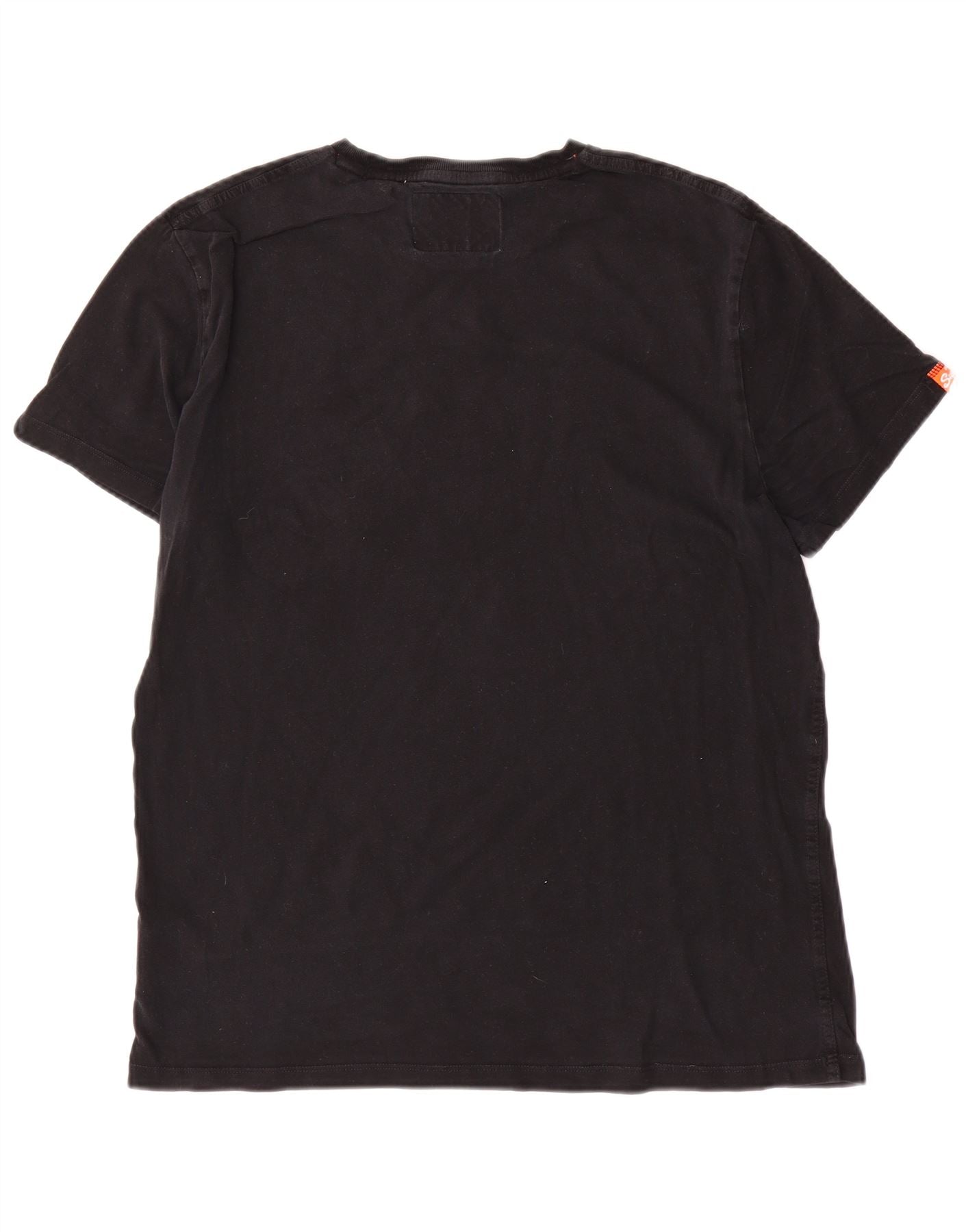 - Descrição da IA: Esta camiseta masculina Superdry é confeccionada em jersey preto macio 100% algodão. Possui gola redonda clássica e mangas curtas para conforto diário. O corte regular oferece uma silhueta relaxada, mas estruturada. Um logotipo sutil bordado no peito adiciona um detalhe exclusivo da marca. A costura laranja acentua o decote e os punhos das mangas, proporcionando um toque de contraste e apelo vintage.