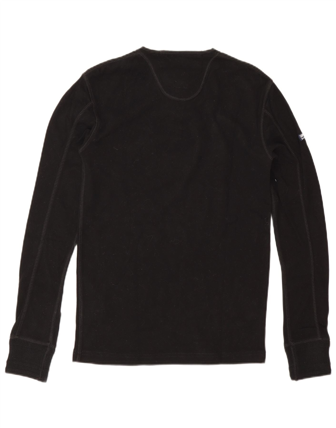 - Descrição da IA: Esta camiseta masculina de manga comprida Superdry é confeccionada em um confortável tecido de malha preta. Possui decote Henley clássico com carcela de botões. Botões brancos contrastantes adicionam um toque refinado. As mangas compridas terminam com punhos elegantes. Marca sutil aparece no peito e na manga. O ajuste regular garante um uso confortável. Este estilo Heritage Grandad oferece um apelo casual e atemporal.