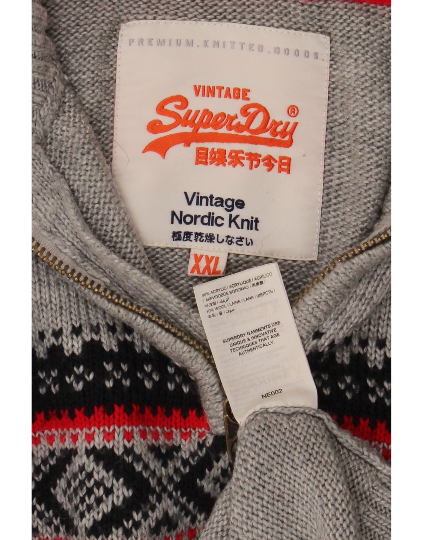 Suéter masculino Superdry com zíper e gola 2XL cinza Fair Isle acrílico