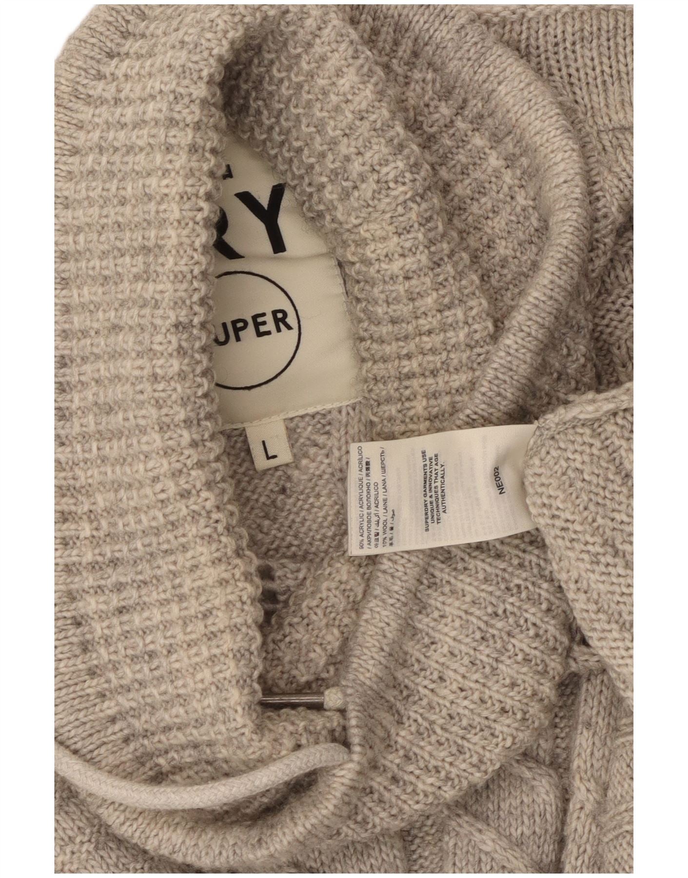 - Descrição da IA: Este suéter poncho feminino Superdry é confeccionado em malha cinza pesada, misturando acrílico e lã para maior conforto. Possui um corte descontraído e solto com uma gola xale distinta. O design apresenta um padrão de malha proeminente, adicionando uma textura rica. Um detalhe sutil do logotipo completa o visual. O estilo de manga curta oferece uma silhueta moderna, perfeita para camadas.