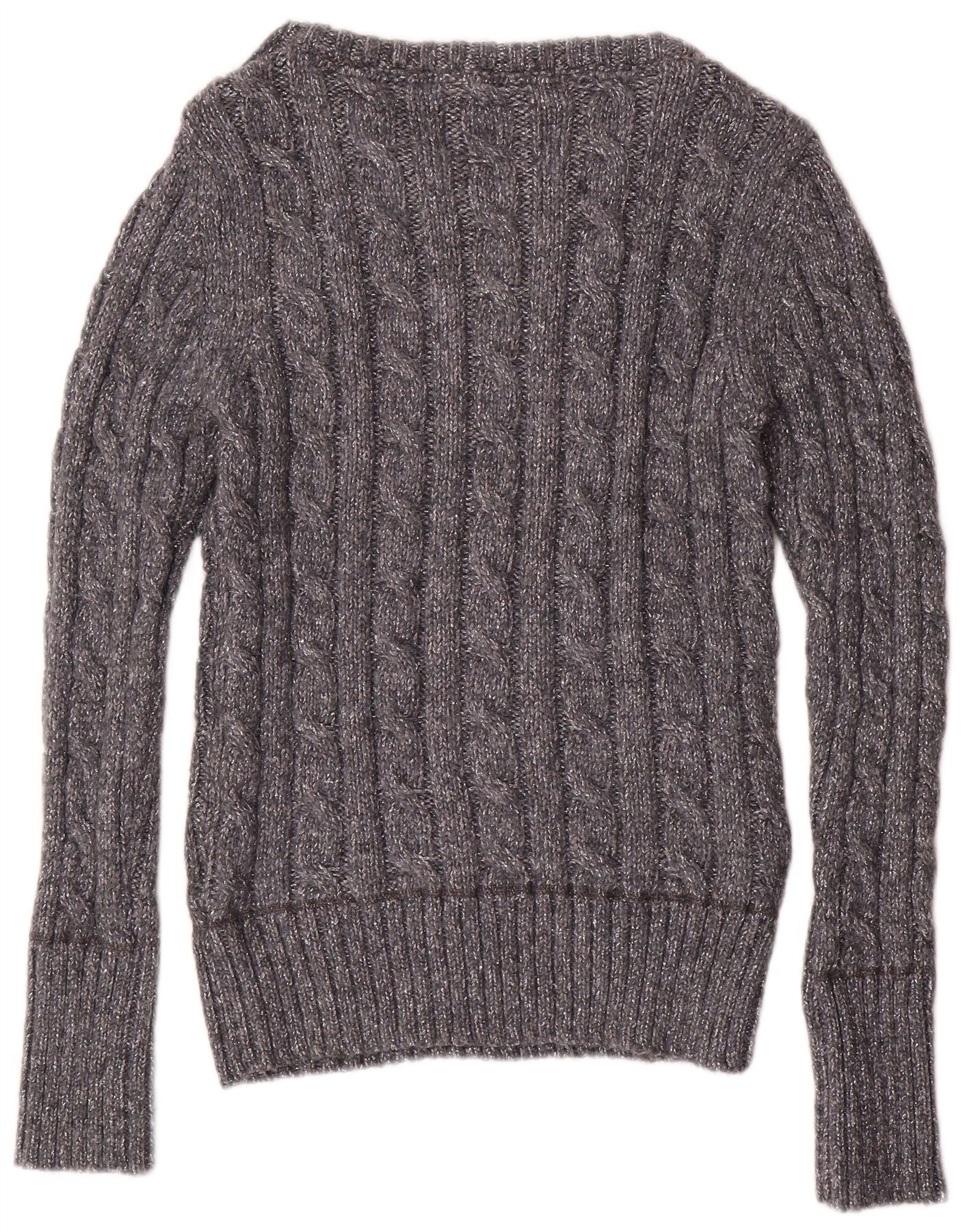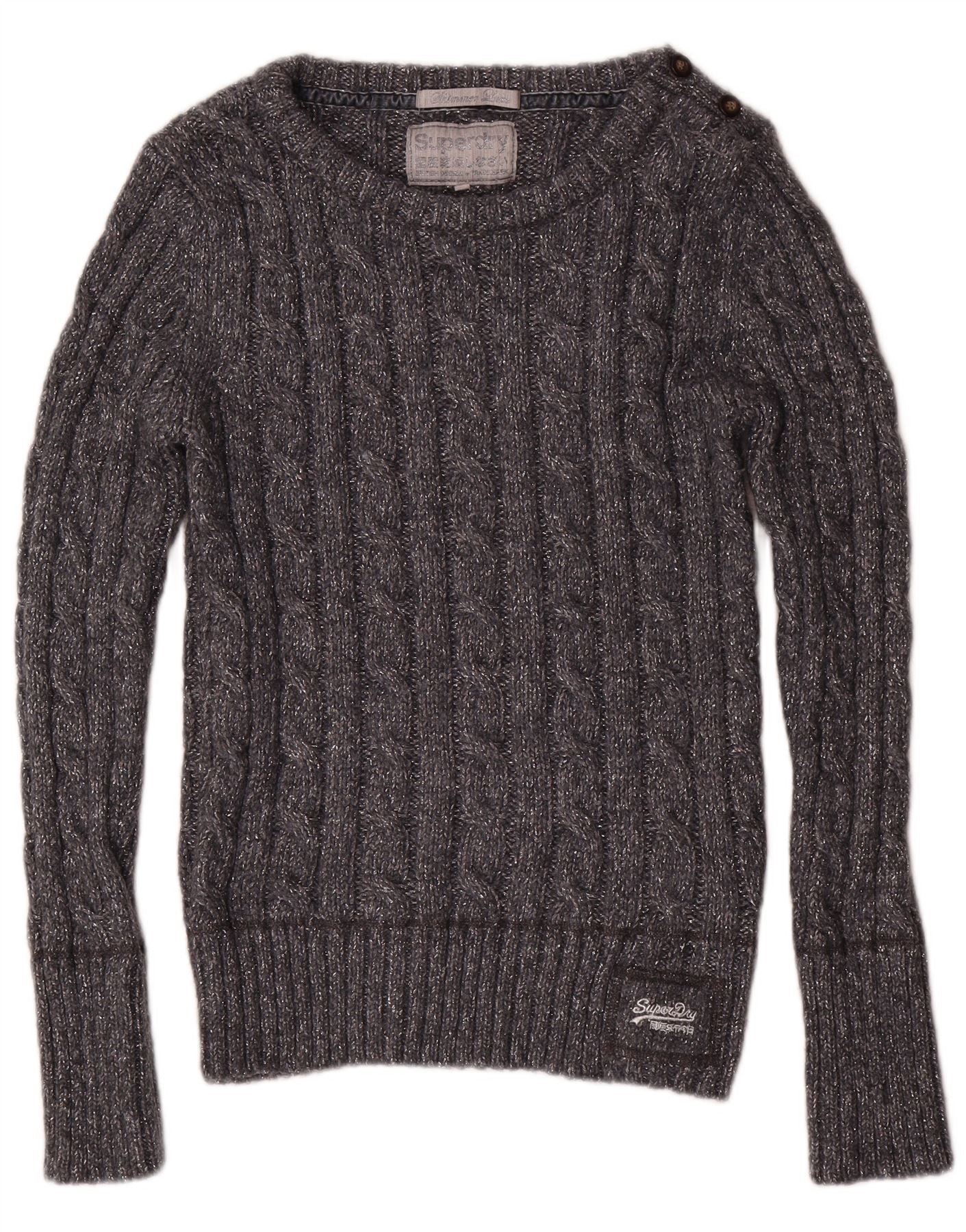 Suéter feminino SUPERDRY com gola canoa UK 16 poliéster cinza grande