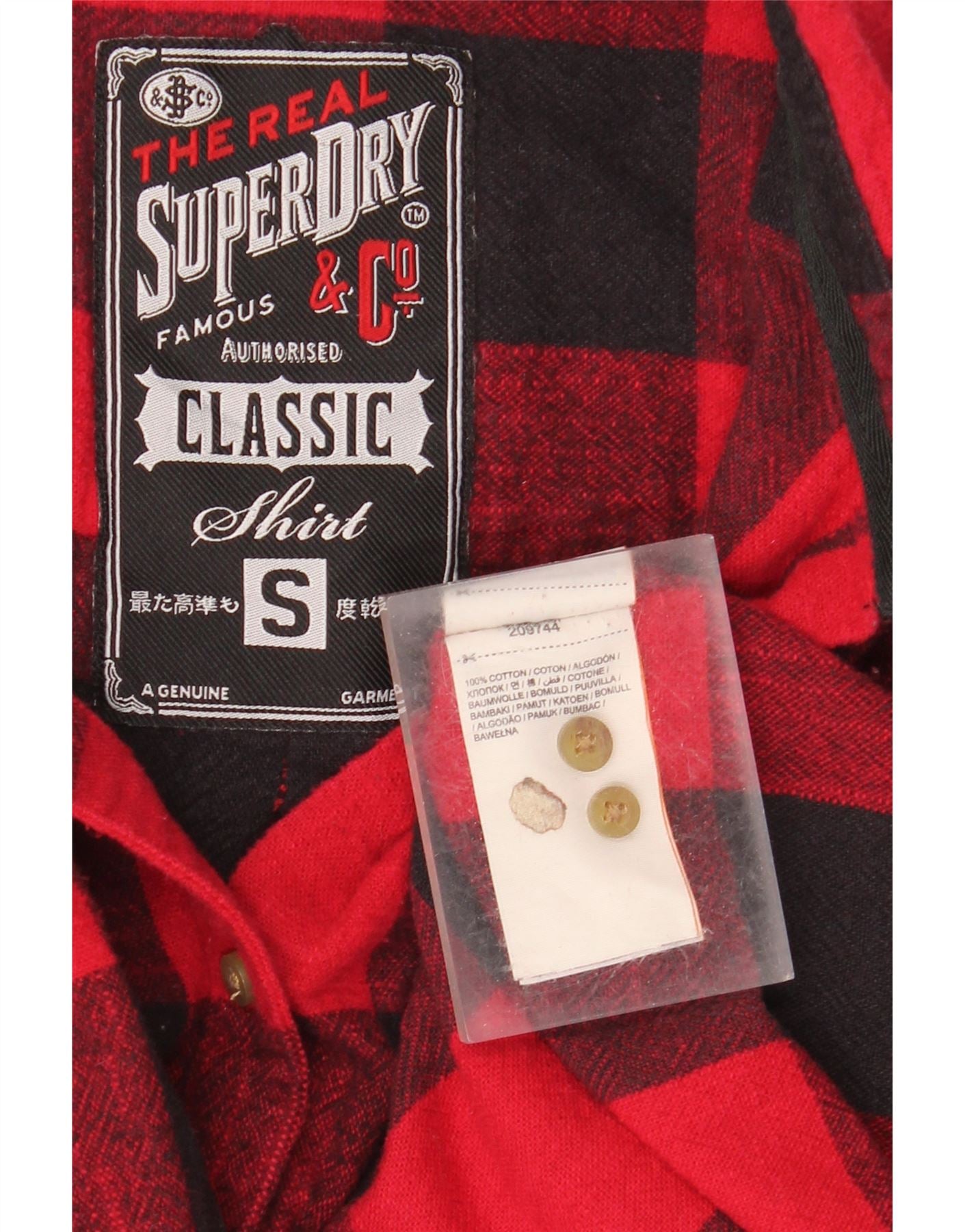 Camisa feminina de flanela Superdry Classic Fit Reino Unido 10 pequeno algodão vermelho guingão