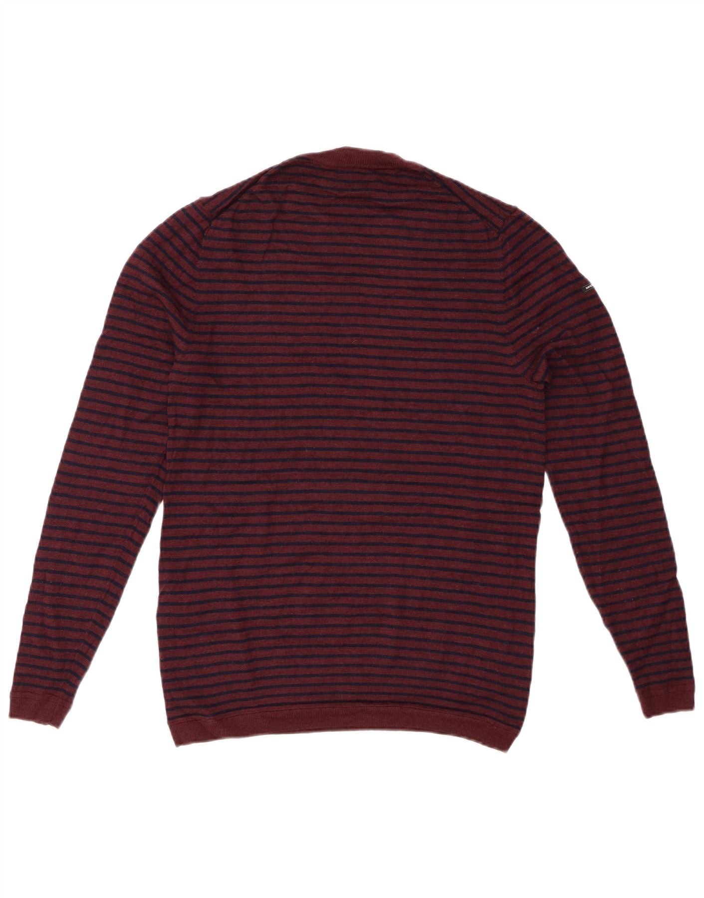 Suéter feminino SUPERDRY com gola redonda UK 14 grande listrado cor de vinho