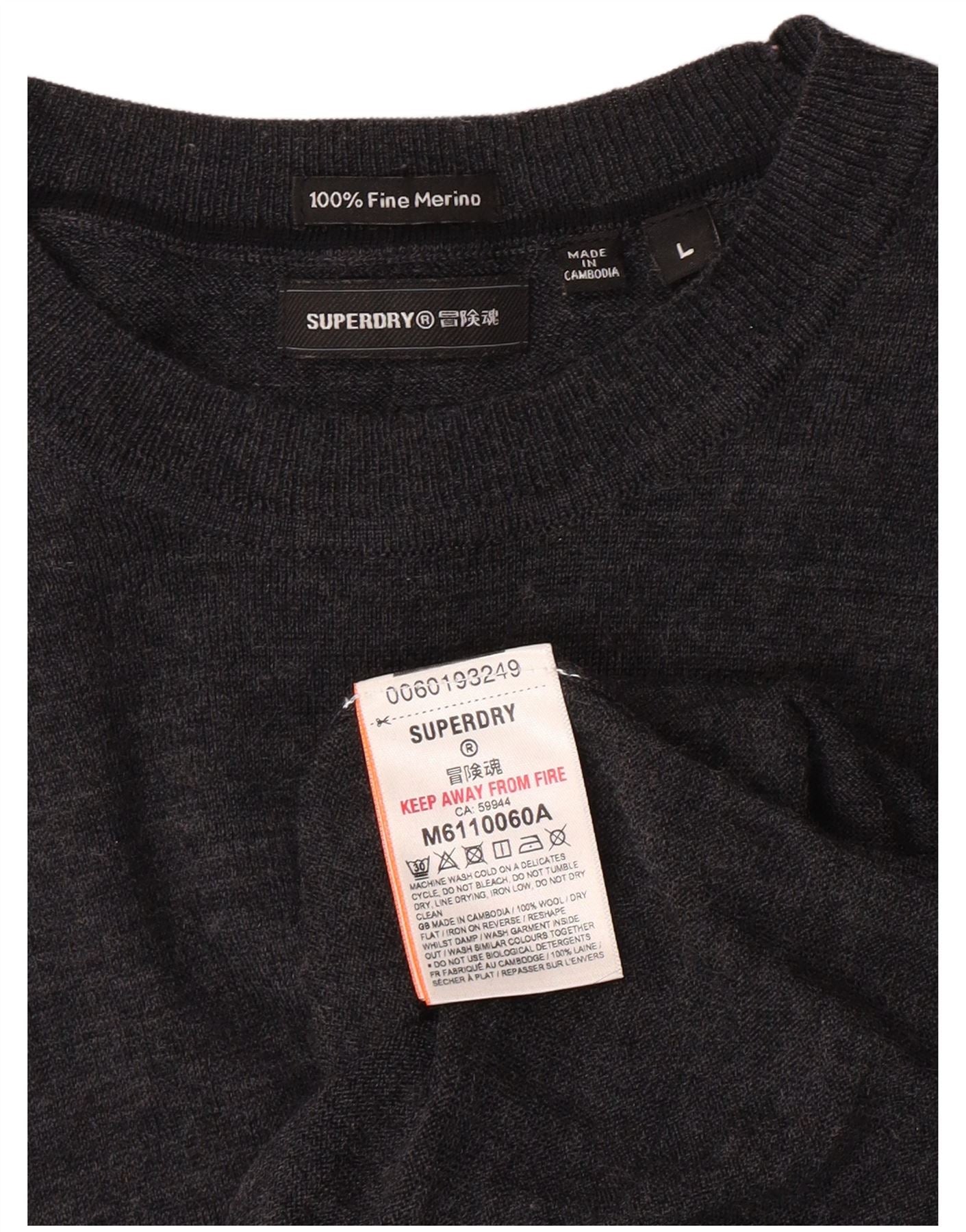 Suéter feminino SUPERDRY com gola redonda Reino Unido 14 grande lã merino cinza