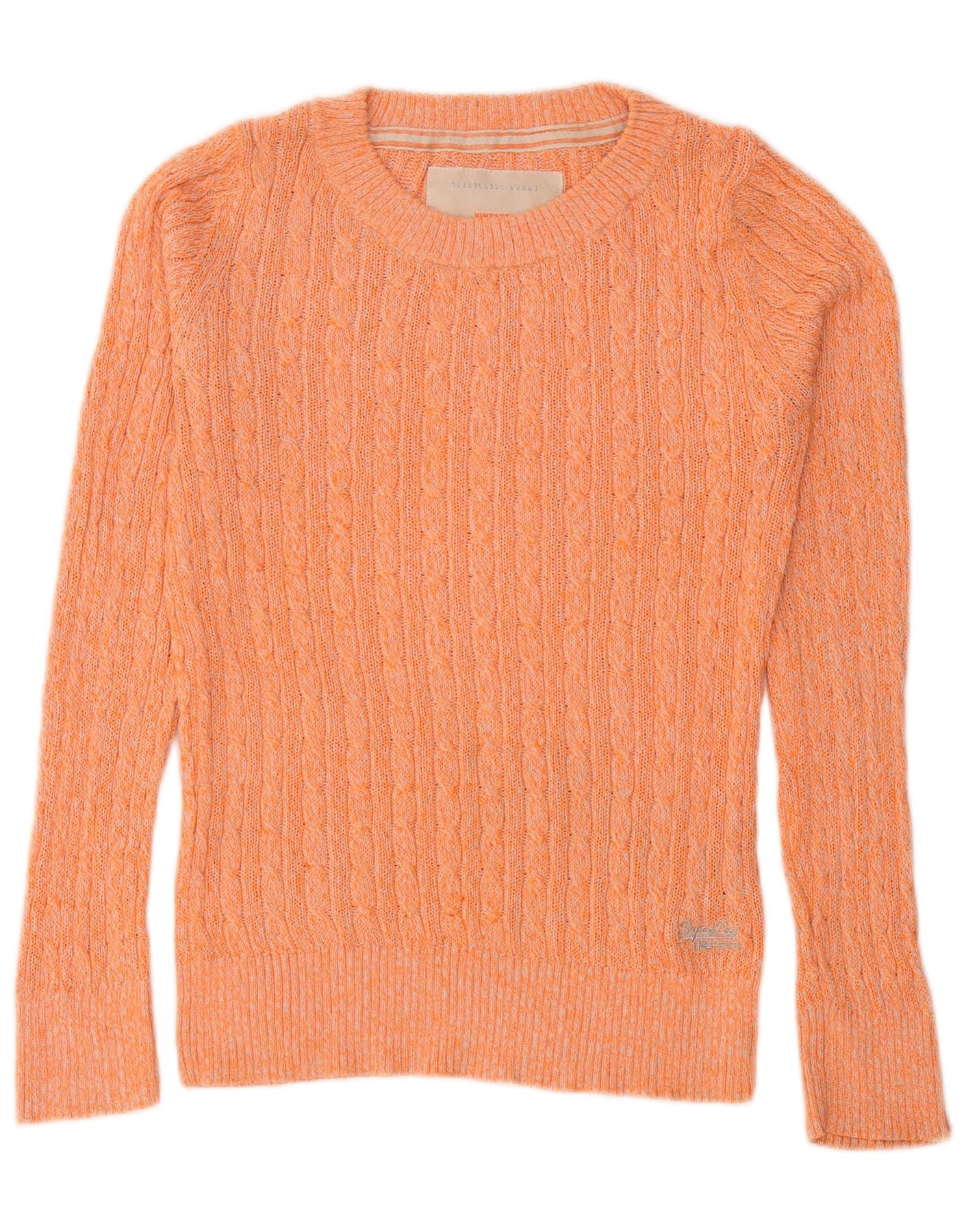 Suéter feminino Superdry com gola redonda, Reino Unido 14, grande, laranja, algodão manchado
