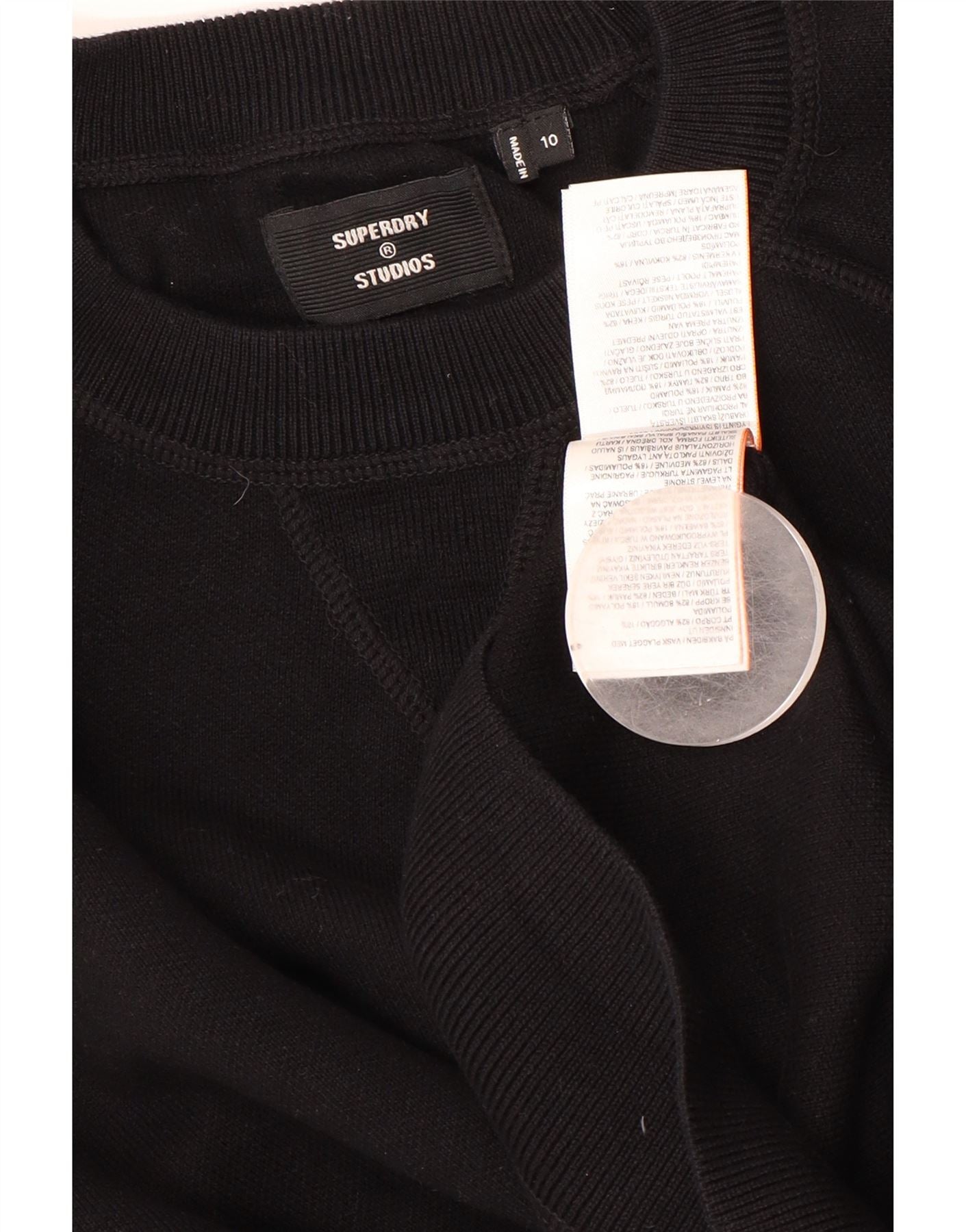 Suéter feminino superdimensionado SUPERDRY UK 10 pequeno algodão preto