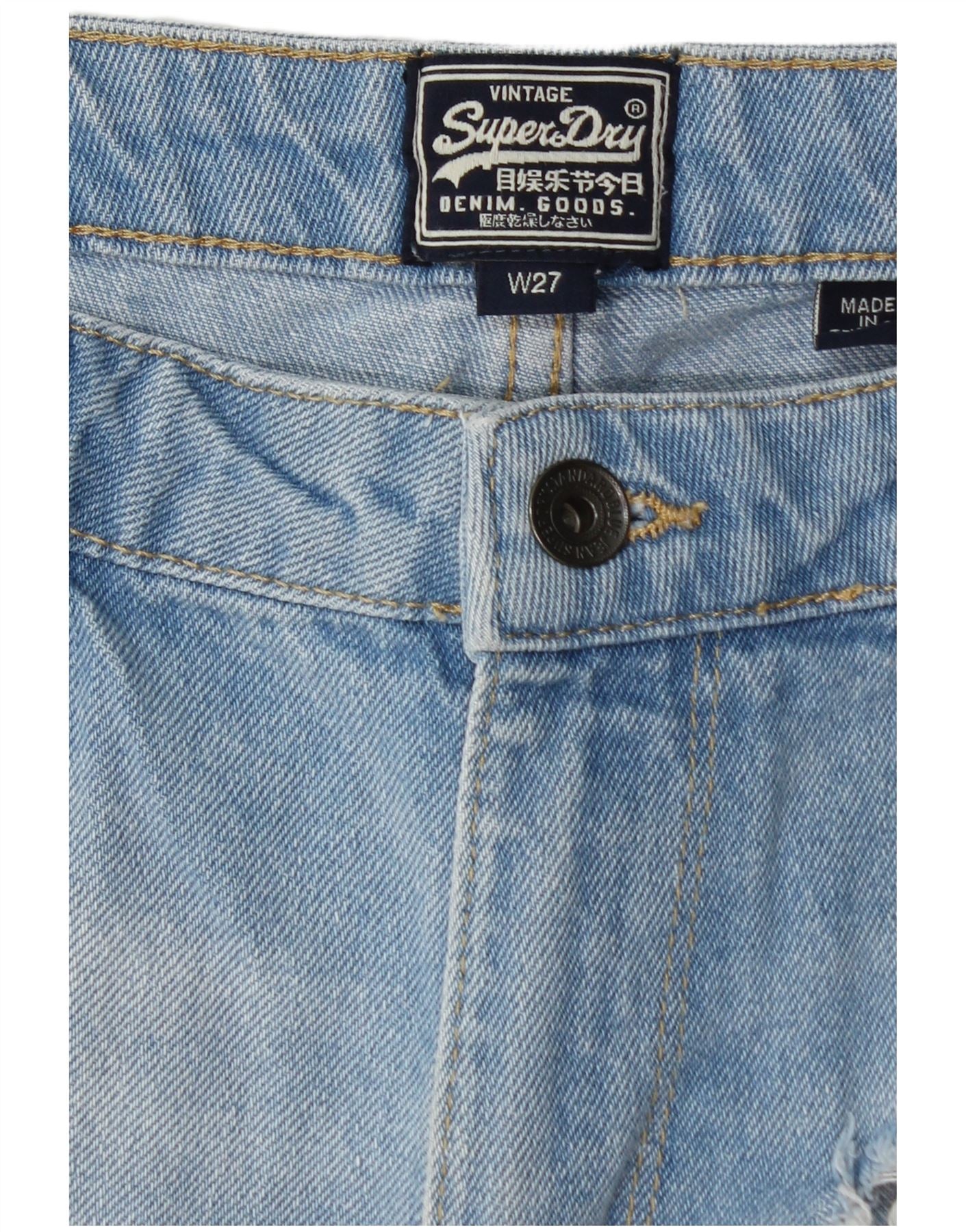 Shorts jeans feminino com estampa envelhecida SUPERDRY W27 pequeno algodão azul