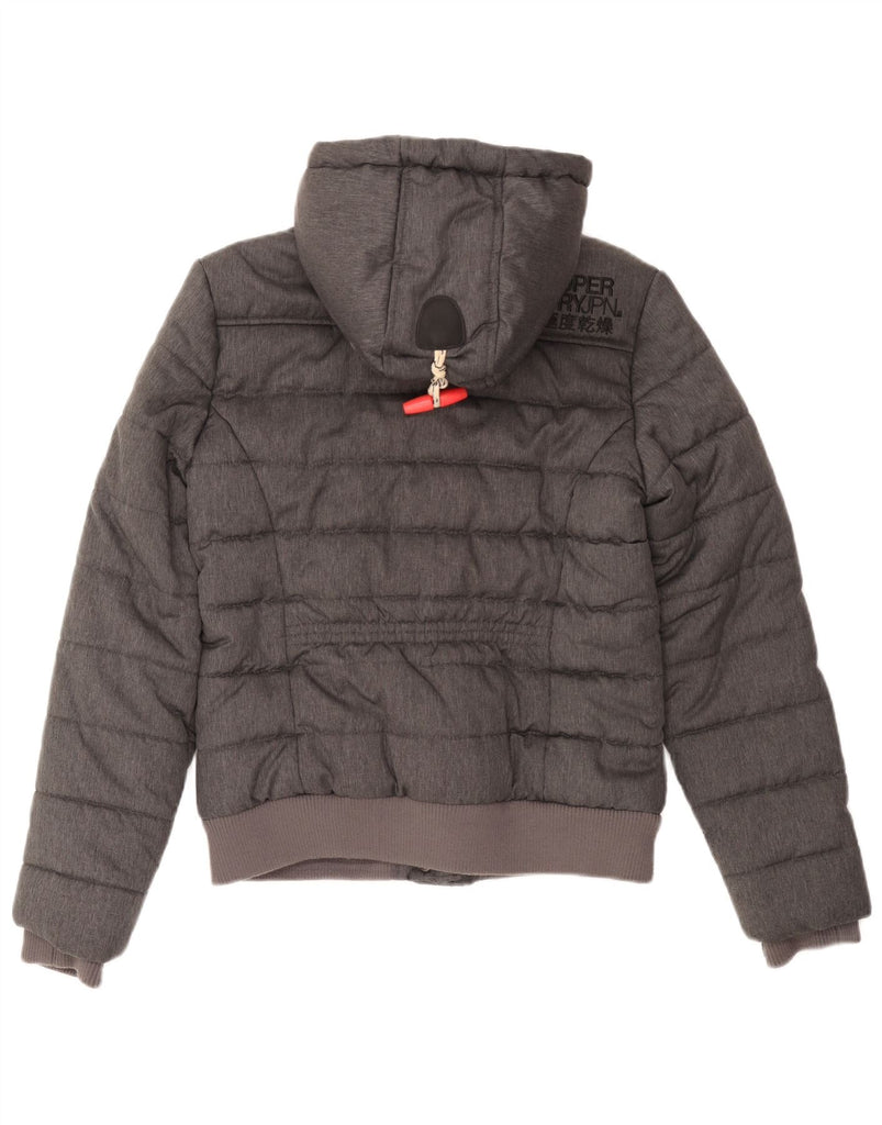 SUPERDRY Womens Graphic Hooded Padded Jacket UK 14 Large Grey Polyester