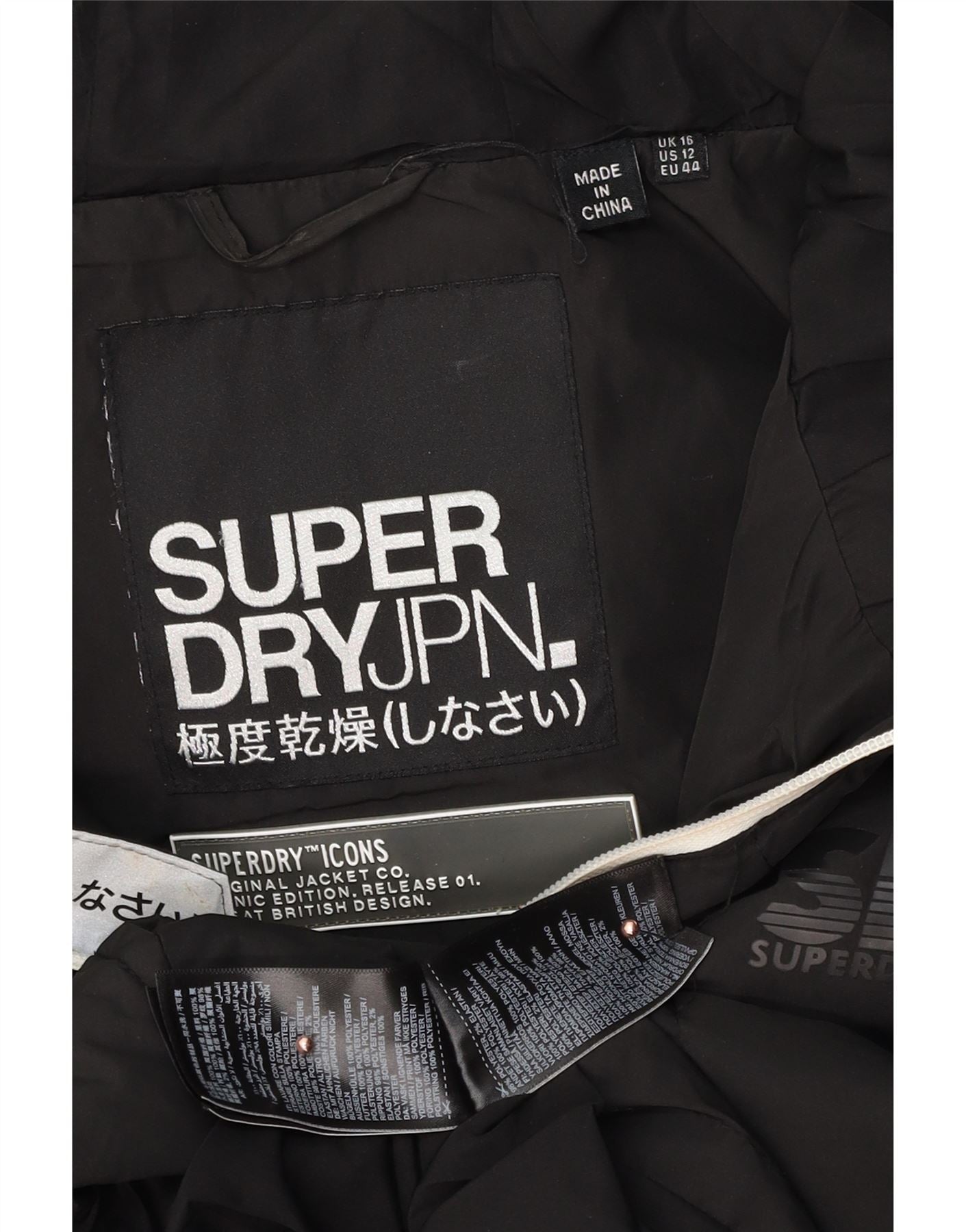 Jaqueta feminina acolchoada com capuz gráfico SUPERDRY Reino Unido 16 grande bloco colorido preto
