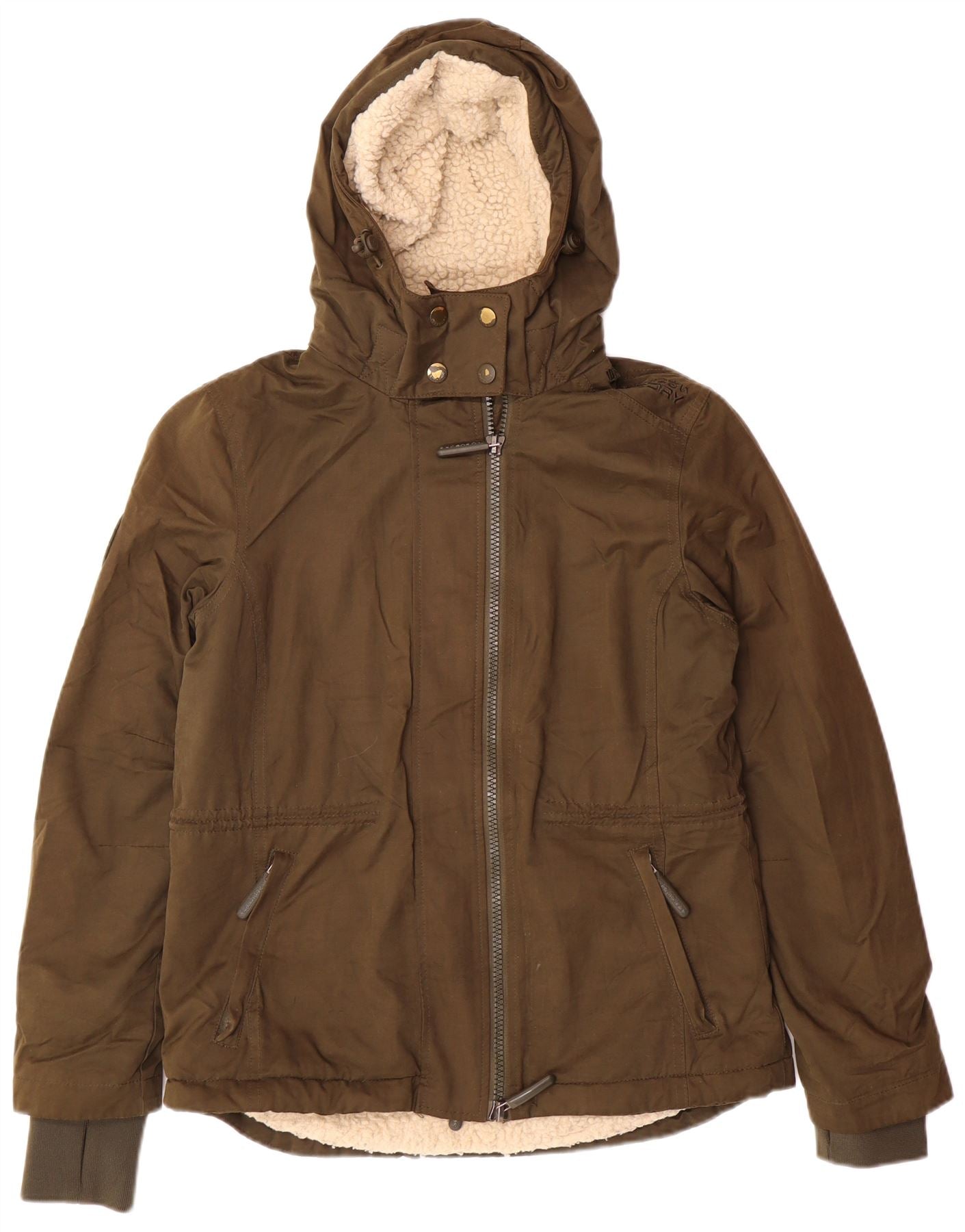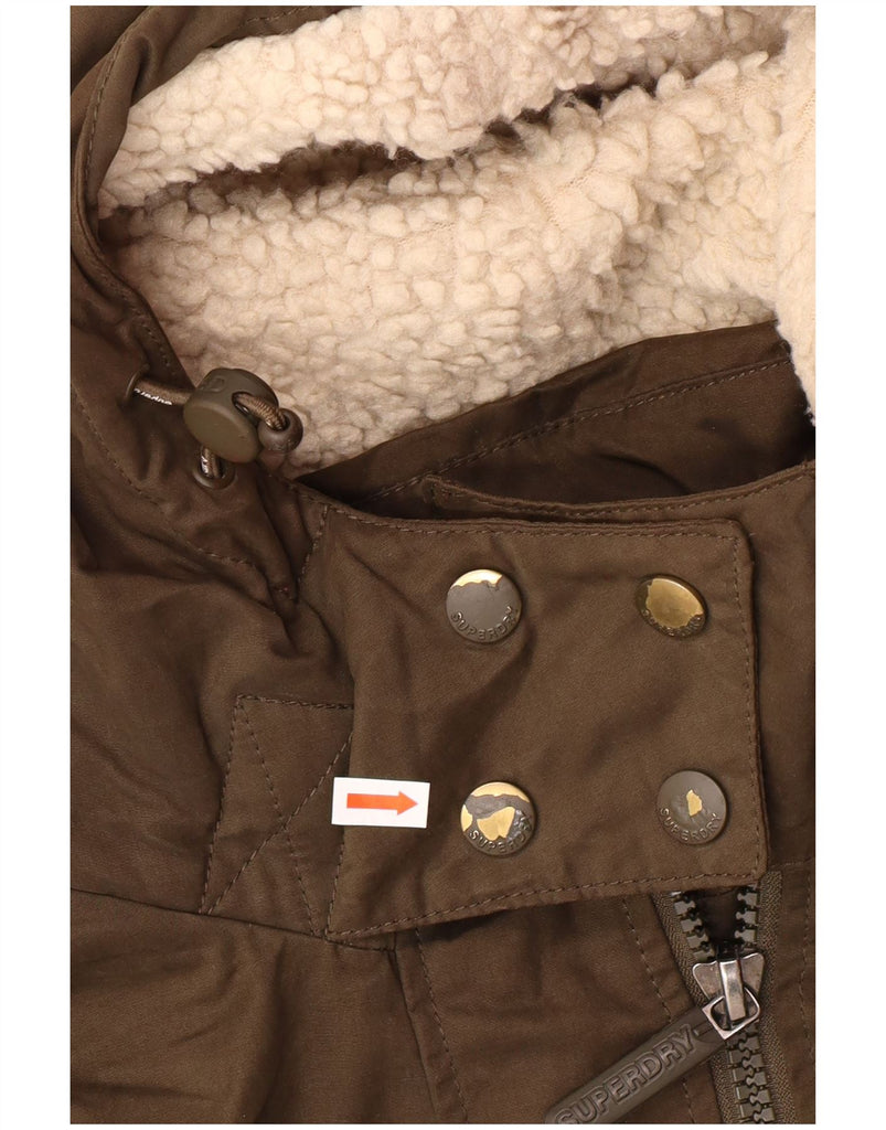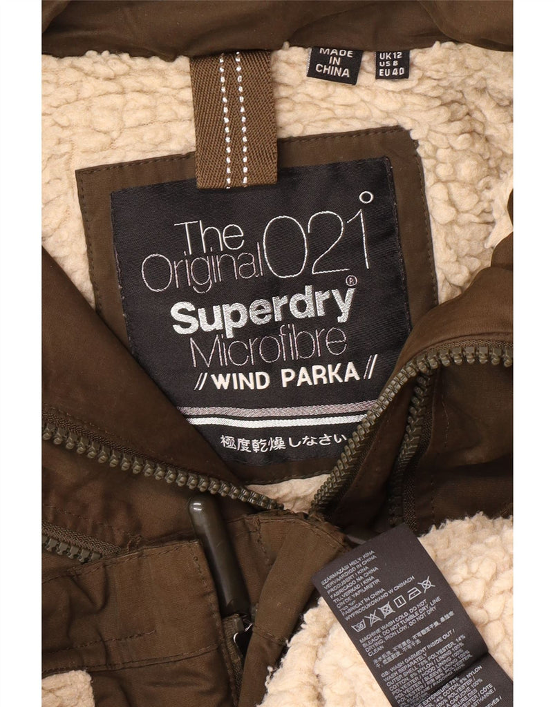 Jaqueta corta-vento feminina SUPERDRY com capuz gráfico Reino Unido 12 médio cáqui