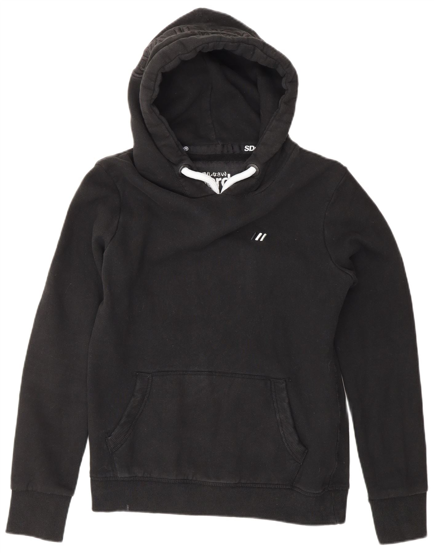 Jumper feminino com capuz gráfico SUPERDRY Reino Unido 10 pequeno algodão preto