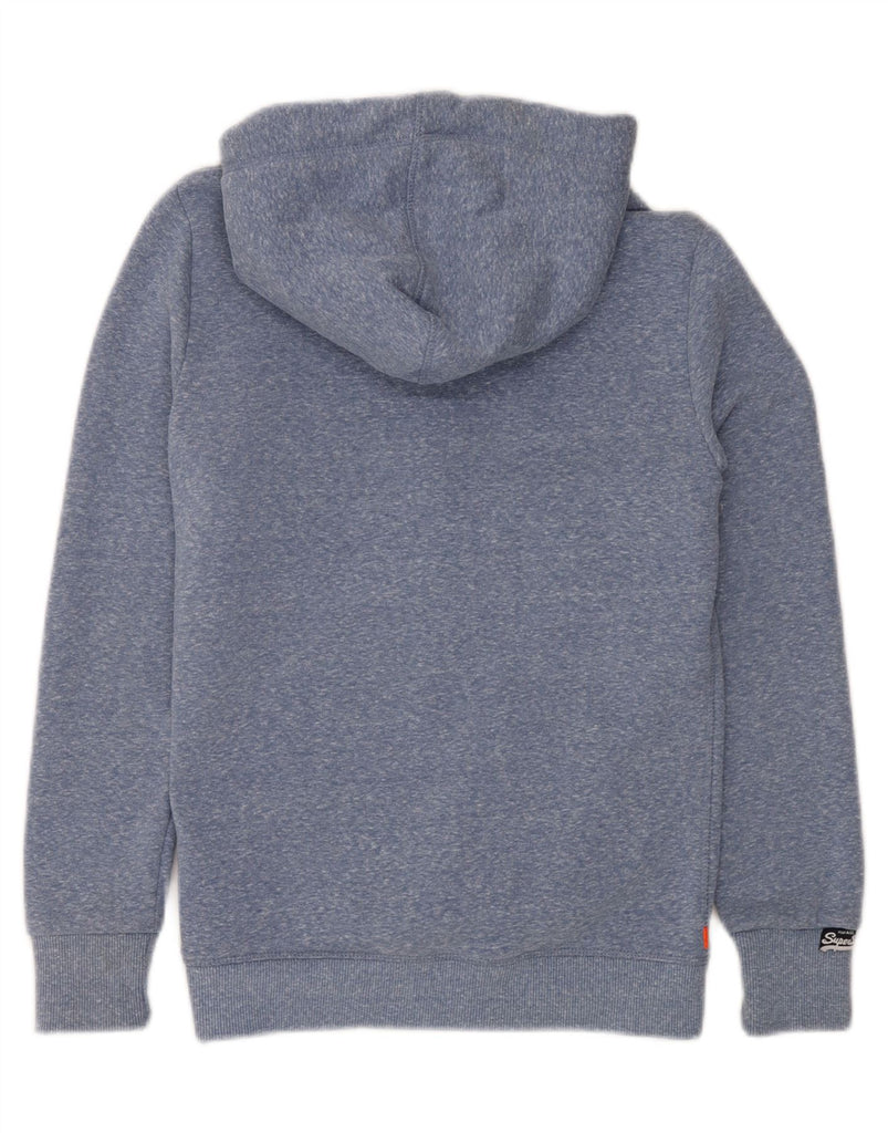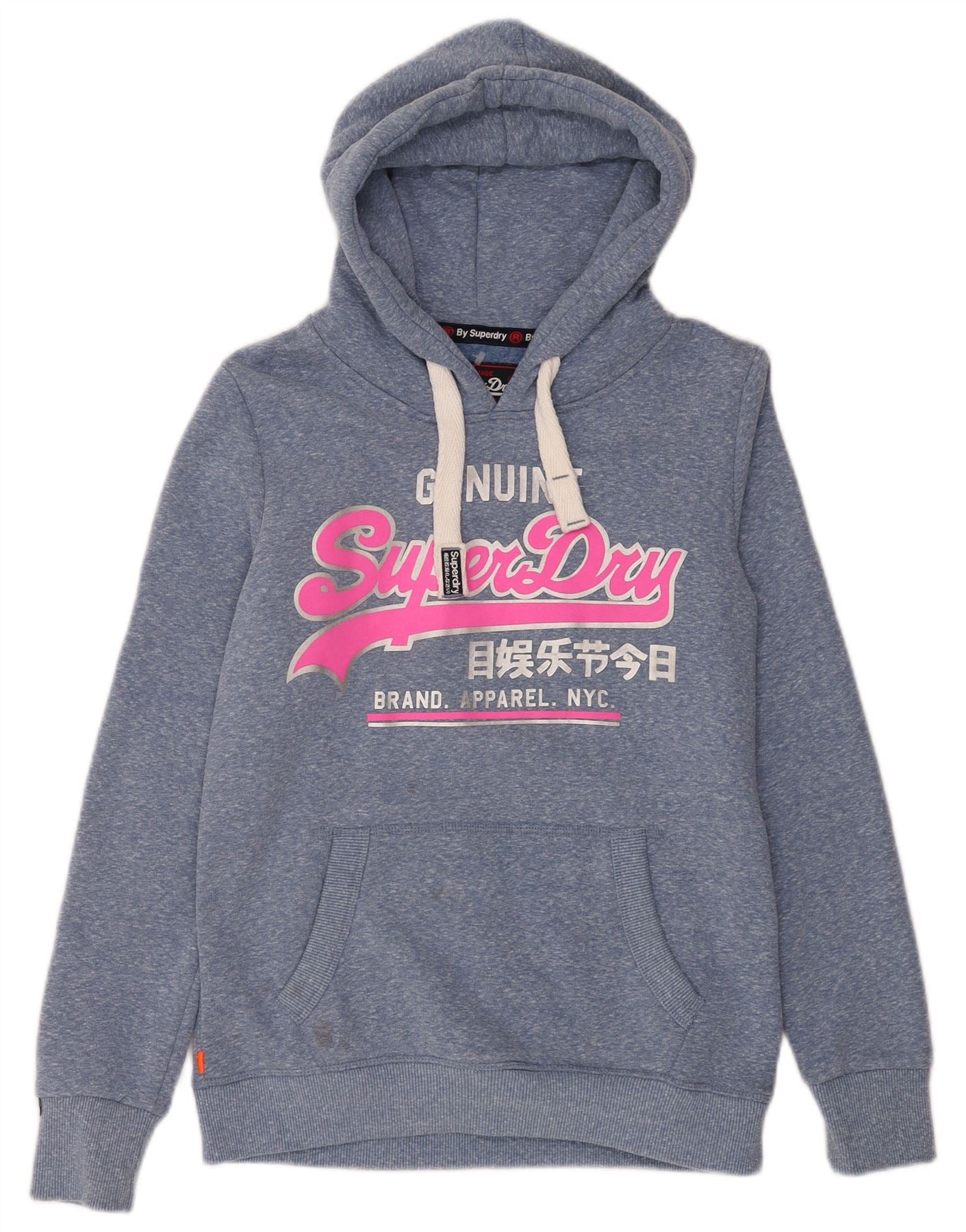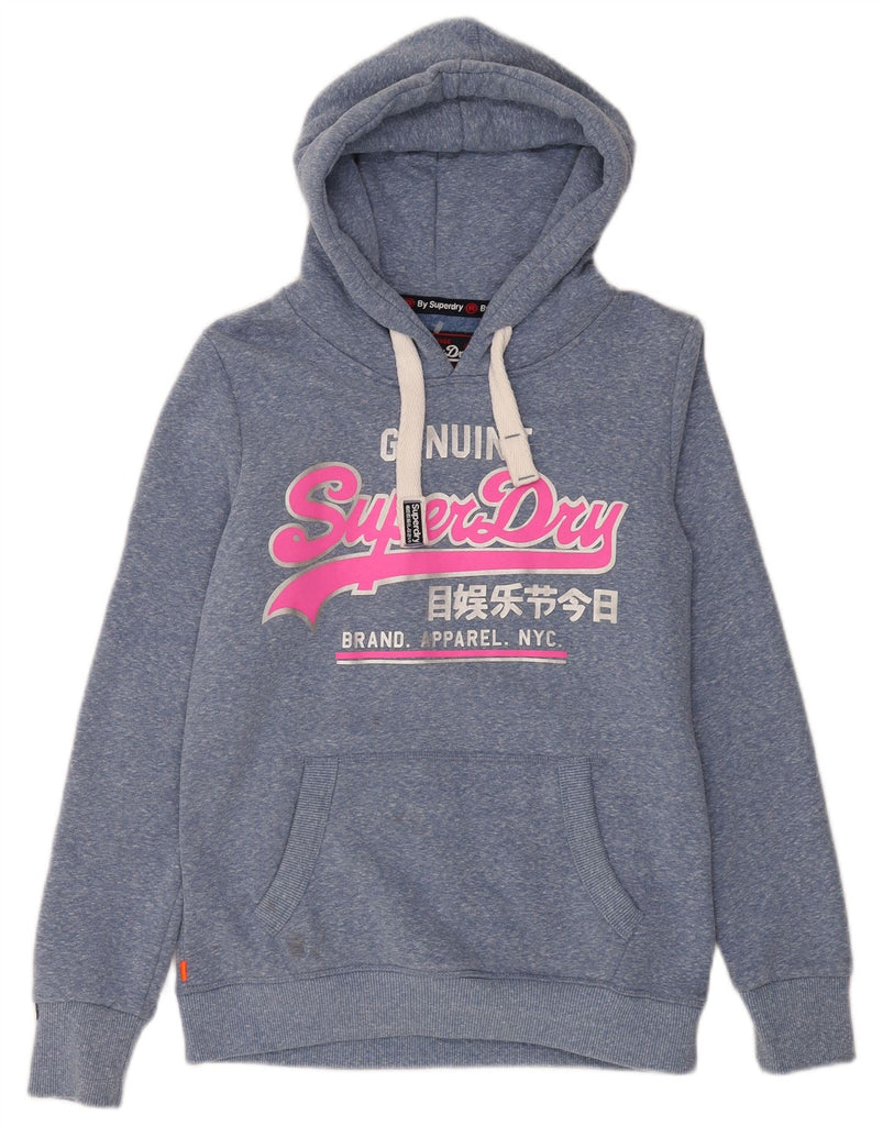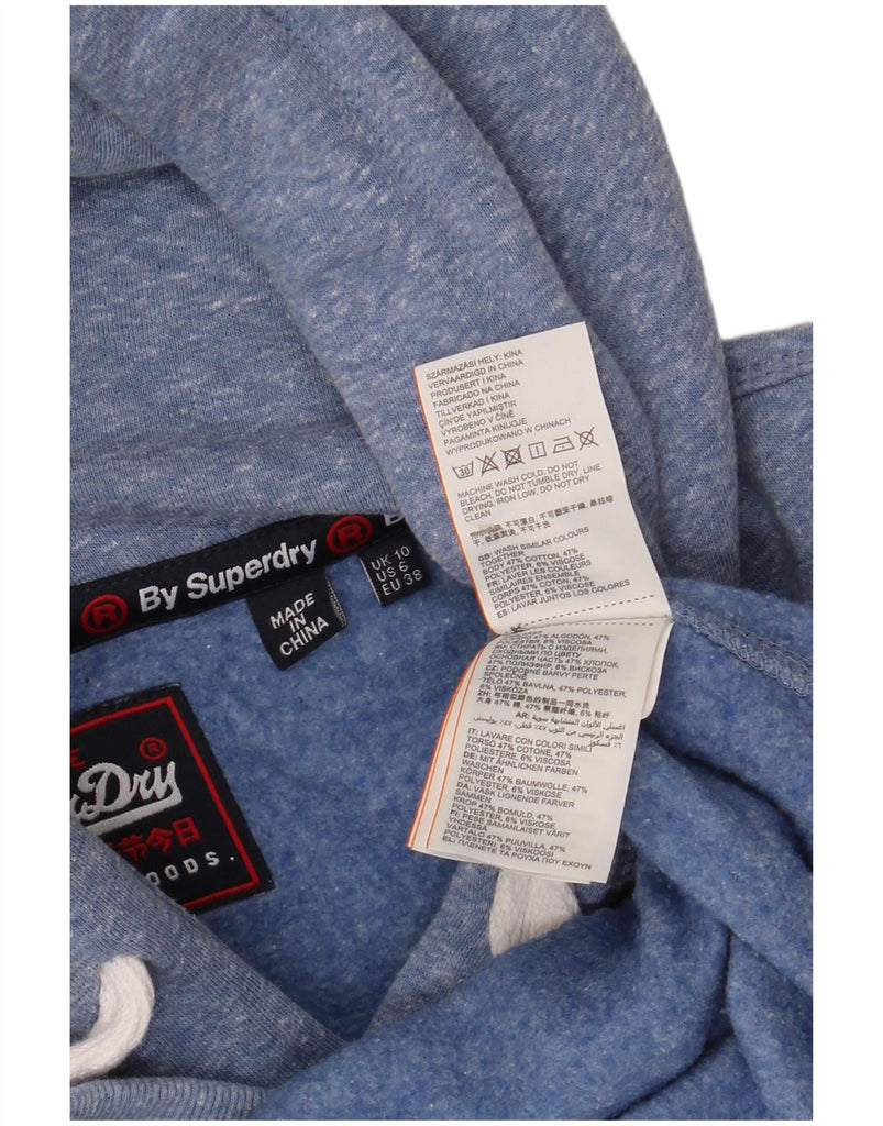 SUPERDRY Womens Graphic Hoodie Jumper UK 10 Small Blue Flecked Cotton