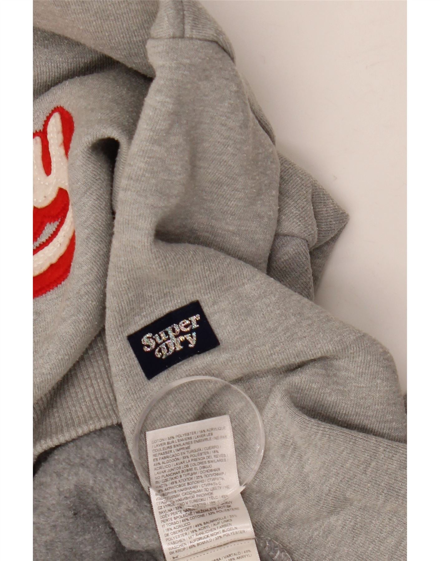 Jumper feminino com capuz gráfico SUPERDRY UK 14 algodão cinza médio