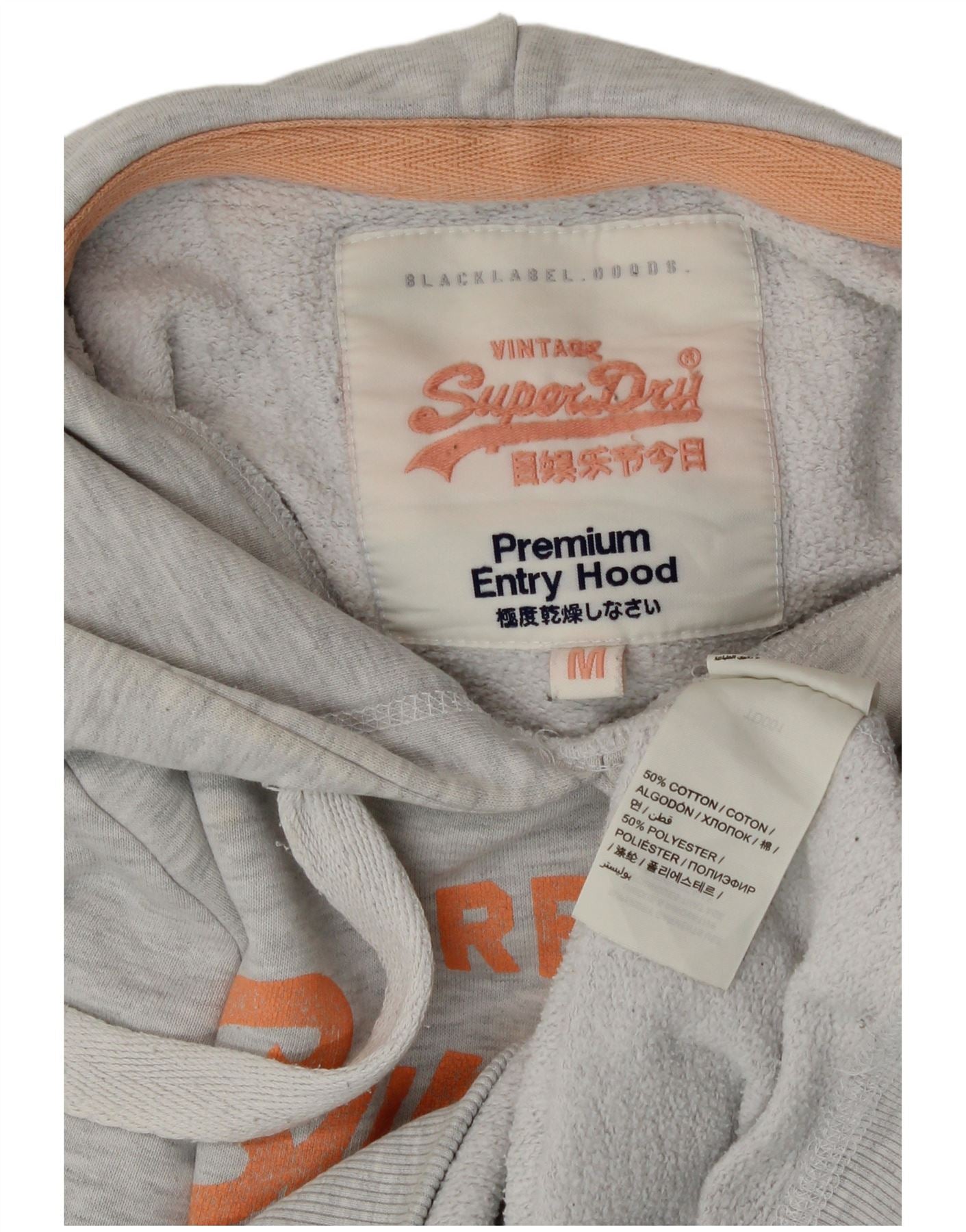 Jumper feminino com capuz gráfico SUPERDRY UK 14 algodão manchado cinza médio