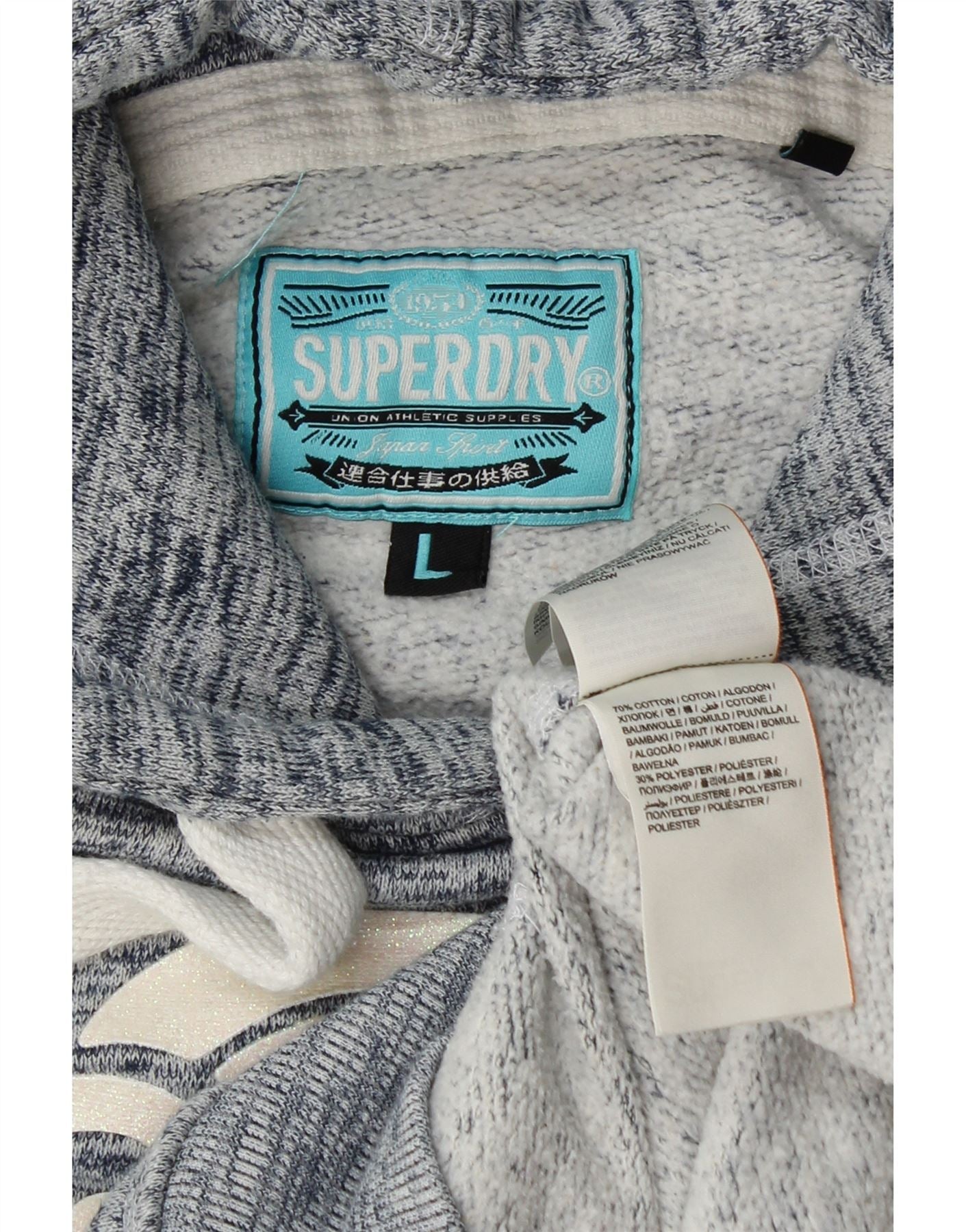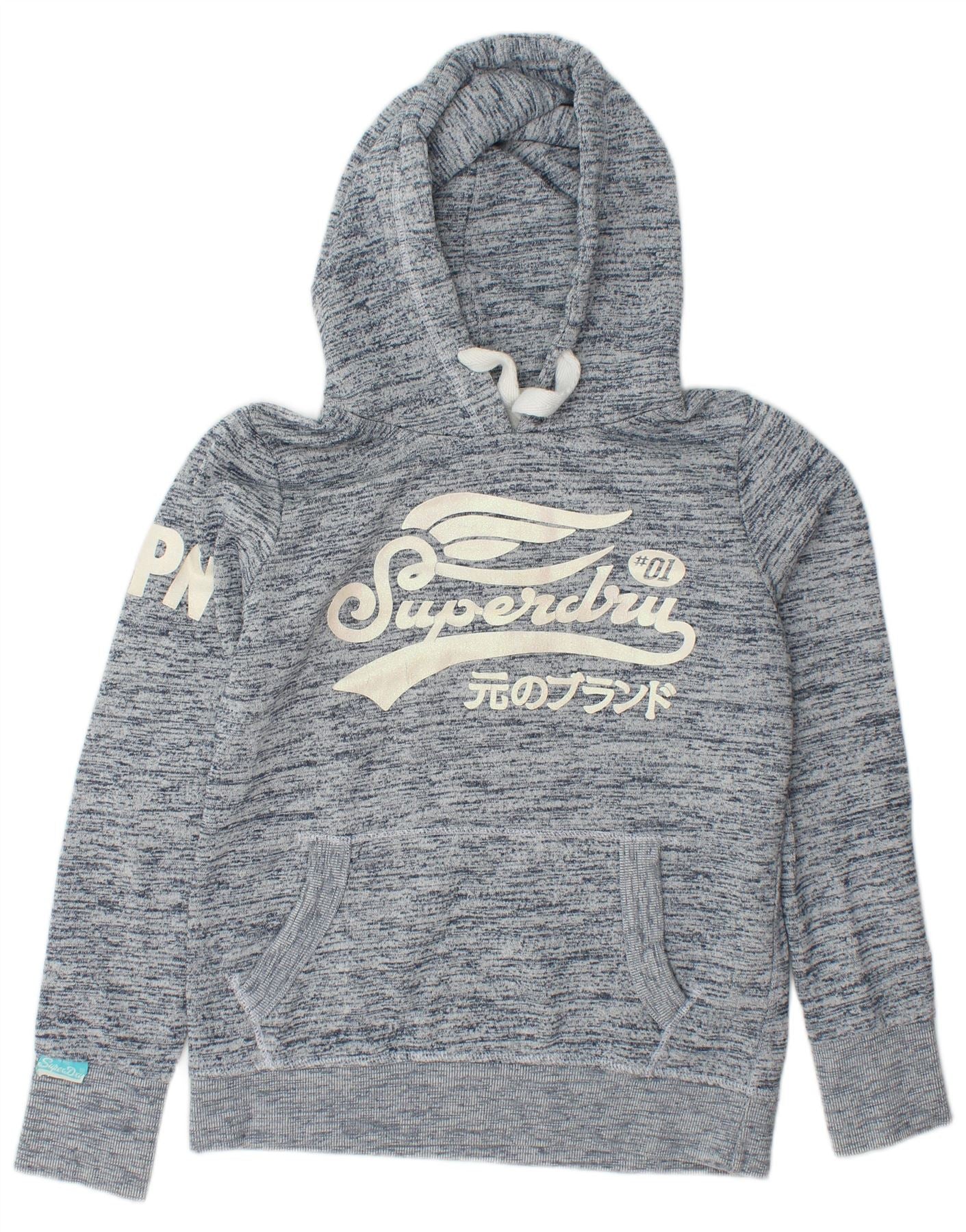 Jumper feminino com capuz gráfico SUPERDRY Reino Unido 16 grande algodão manchado azul marinho