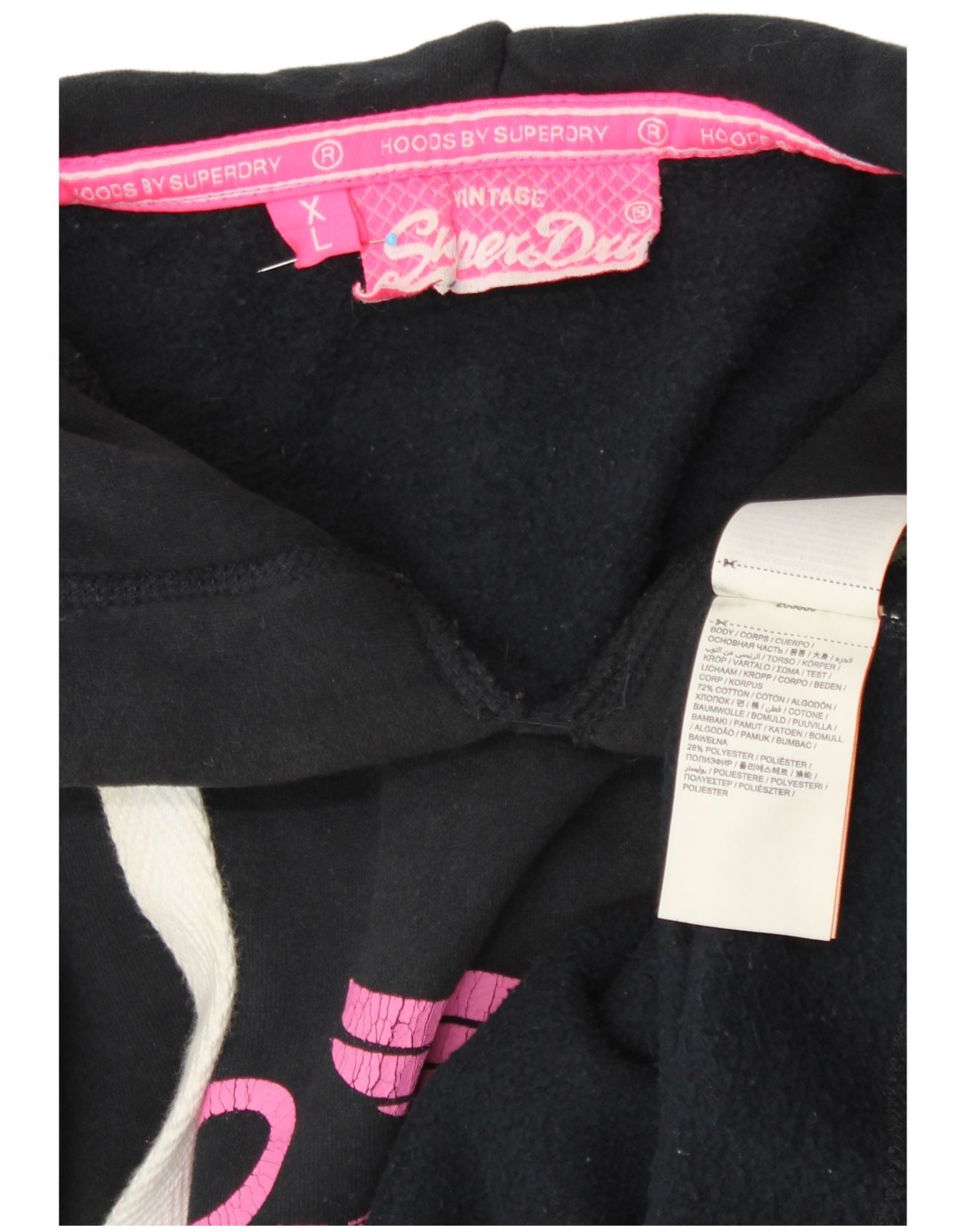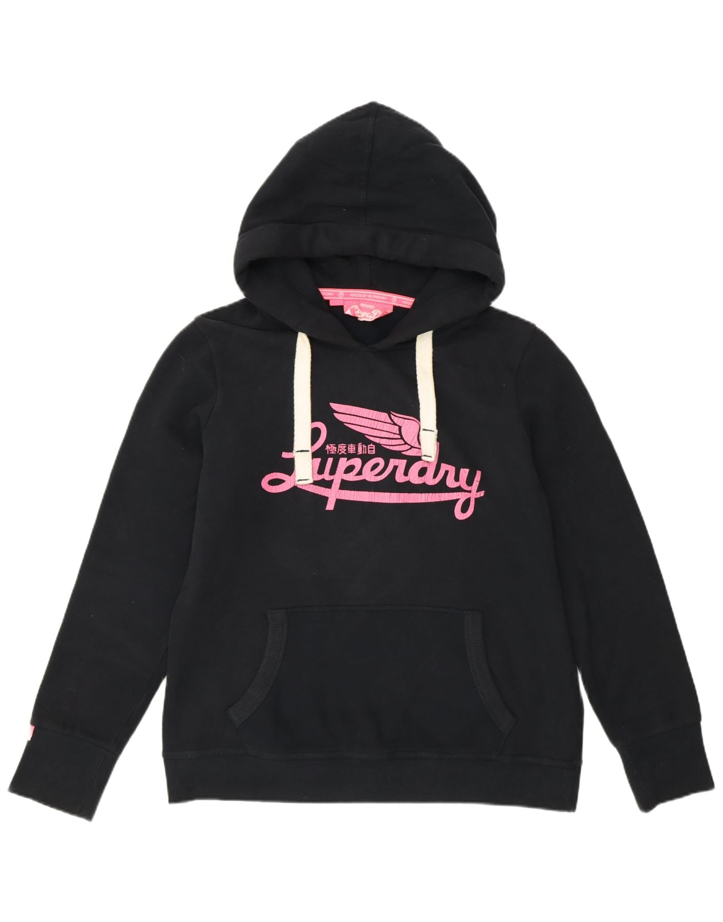 Jumper com capuz gráfico feminino SUPERDRY UK 18 XL algodão preto