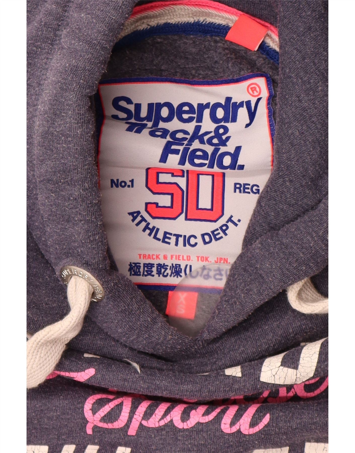 Jumper com capuz gráfico feminino SUPERDRY UK 6 XS azul marinho algodão