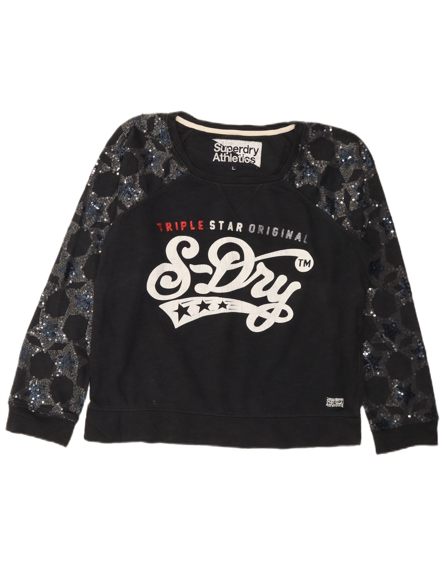 Suéter gráfico feminino SUPERDRY UK 16 grande algodão preto